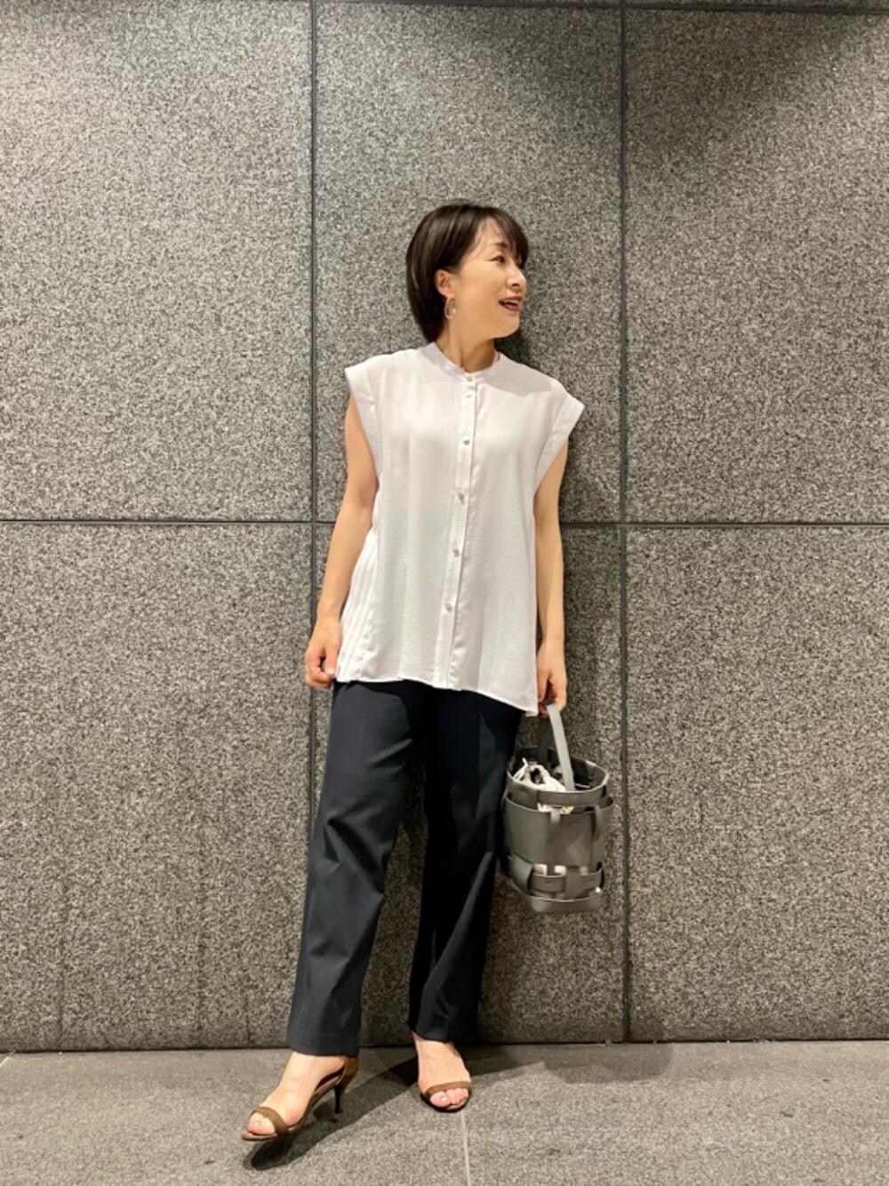 40代/152cm/骨格ストレート/普段サイズ36〜38/着用サイズ38 【ジョーゼットサイドプリーツブラウス】 サイズ感:ゆったりした、ヒップライン隠れる丈です。 素材感: さらっとした肌触りよい着心地です。 着用感:お袖の広がりが二の腕をカバーしてくれます。