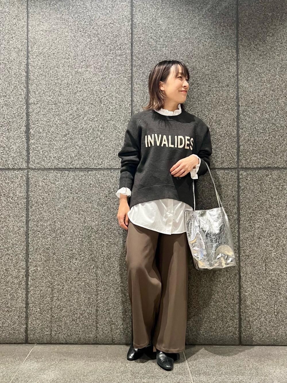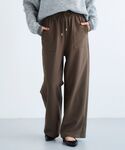 40代/152cm/骨格ストレート/普段サイズ36〜38/着用サイズ38 【ダブルジャガードロゴニット】 サイズ感:ジャストなサイズ感ですが、中にカットソーやブラウスは着用出来るサイズ感です。 素材感: 非ウールなのでチクチク感無く着て頂けます。 着用感:厚みもあまり無いのでアウターを羽織ってもゴワゴワ感はあまり感じられません。 【フリルネック前ボタンブラウス】 サイズ感:ゆとりはありますが、オーバーにならないサイズ感です。 素材感: 柔らかく肌触りよい着心地です。 着用感:重ね着した時に首元・袖先のフリルが見えるのがポイントでかわいいです。 【コスミカルウォームイージーワイドパンツ】着用サイズ: 36 サイズ感: リラックス感がありながら、すっきりとしたシルエットです。 素材感: 柔らかく、内側の起毛で暖かいです。 着用感: 総ゴム仕様で履きやすく、着回し抜群のパンツです。