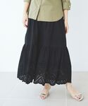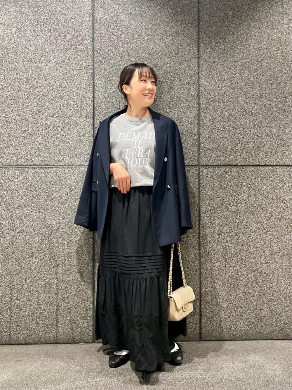 40代/152cm/骨格ストレート/普段サイズ36〜38/着用サイズ38 【カットワークレーススカート】 サイズ感:ウエストゴムで履きやすく、長さは足首にかかるくらいです。 素材感: 綿100%で、程よいハリ感があります。 着用感:スカラップ部分がカットワークになっているため、程よく抜けが出ます。 【ダブルブレストジャケット】 サイズ感: スッキリとしたシルエットですが、程よいゆとりがあり、インナーを選ばないです。 素材感: レーヨン混で柔らかく、腕を動かしやすいです。袖を捲ると出てくるストライプの生地がオシャレです。 着用感: カジュアルでもキレイめでも着回しやすく、1枚あると重宝します◎ 【フレンチロゴプリントロンTEE】 サイズ感: 少しゆとりがあり、1枚で着るとリラックス感のあるサイズ感です。 素材感: コットン100%で肌触りが良いです。 着用感: しっかりした生地感でインナーとしても優秀です。丈は長過ぎずスッキリ着れます。