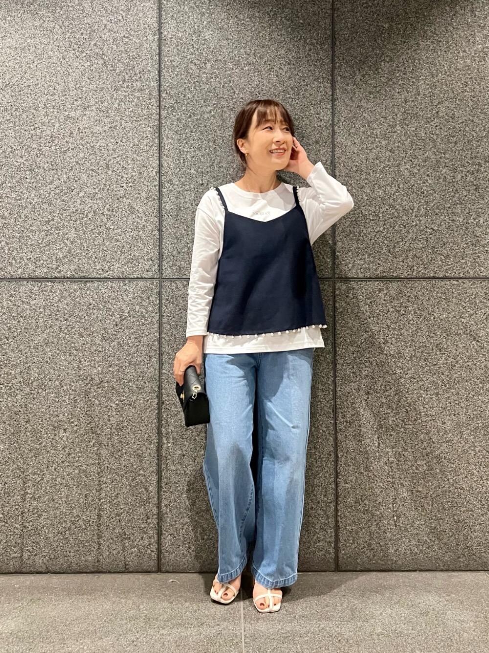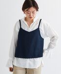 40代/152cm/骨格ストレート/普段サイズ36〜38/着用サイズ38 【パールツキキャミブラウス】 サイズ感:ショート丈でややコンパクトなサイズ感ですが、ニットにも重ね着出来るゆとりがあります。 素材感:綿麻のサラッとした涼しげな素材です。 着用感:シャツやカットソーなどお持ちのインナーにプラスして楽しめます。ストラップ部分と裾にパールが付いており華やかな一枚です。