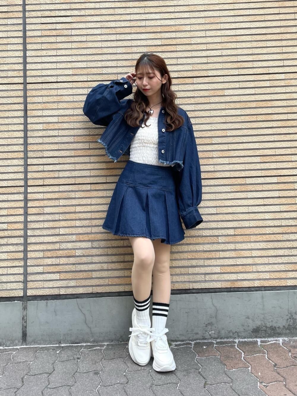 身長153cm/Mサイズ着用 今季トレンドのデニムセットアップコーデ👖 気温に合わせてインナーを変えるだけで楽しめる万能なアイテム達✨️
