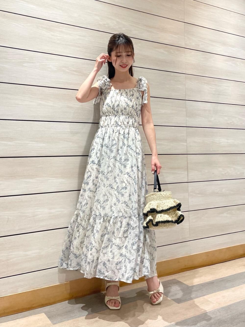 身長153cm/Mサイズ着用(ワンピース:Sサイズ) 大人フェミニンスタイル🤍 肩のリボンがポイントのキャミワンピは1枚で着てもインナーや羽織物をプラスに取り入れやすい万能アイテム✨️ 肩リボンは調整可能なので、好みの丈感ができますよ! シアーシャツを取り入れることで夏これからも合わせていただけます💕