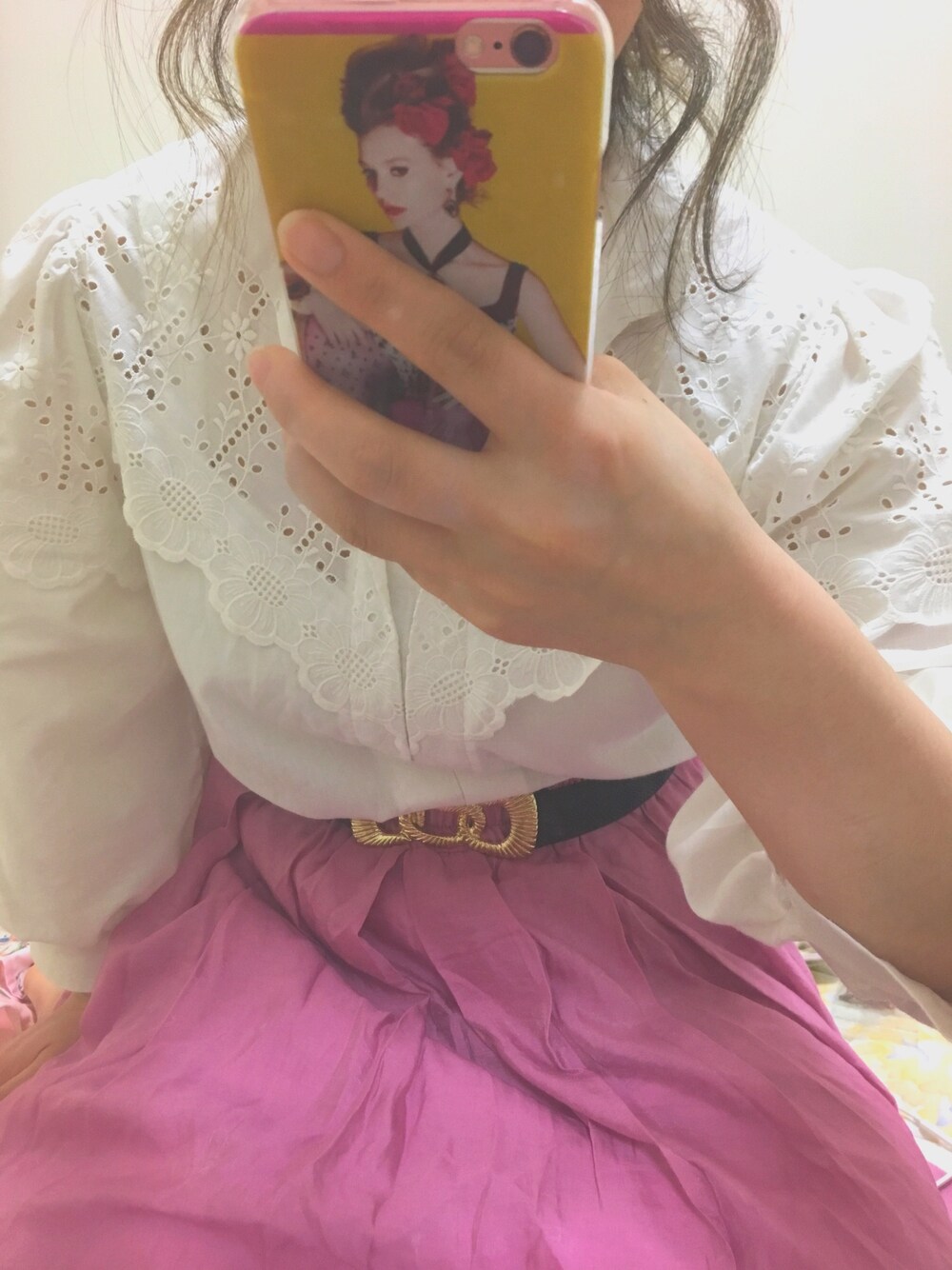 春コーデ 春らしいピンクのスカートです 古着率多めですね スカート以外古着です