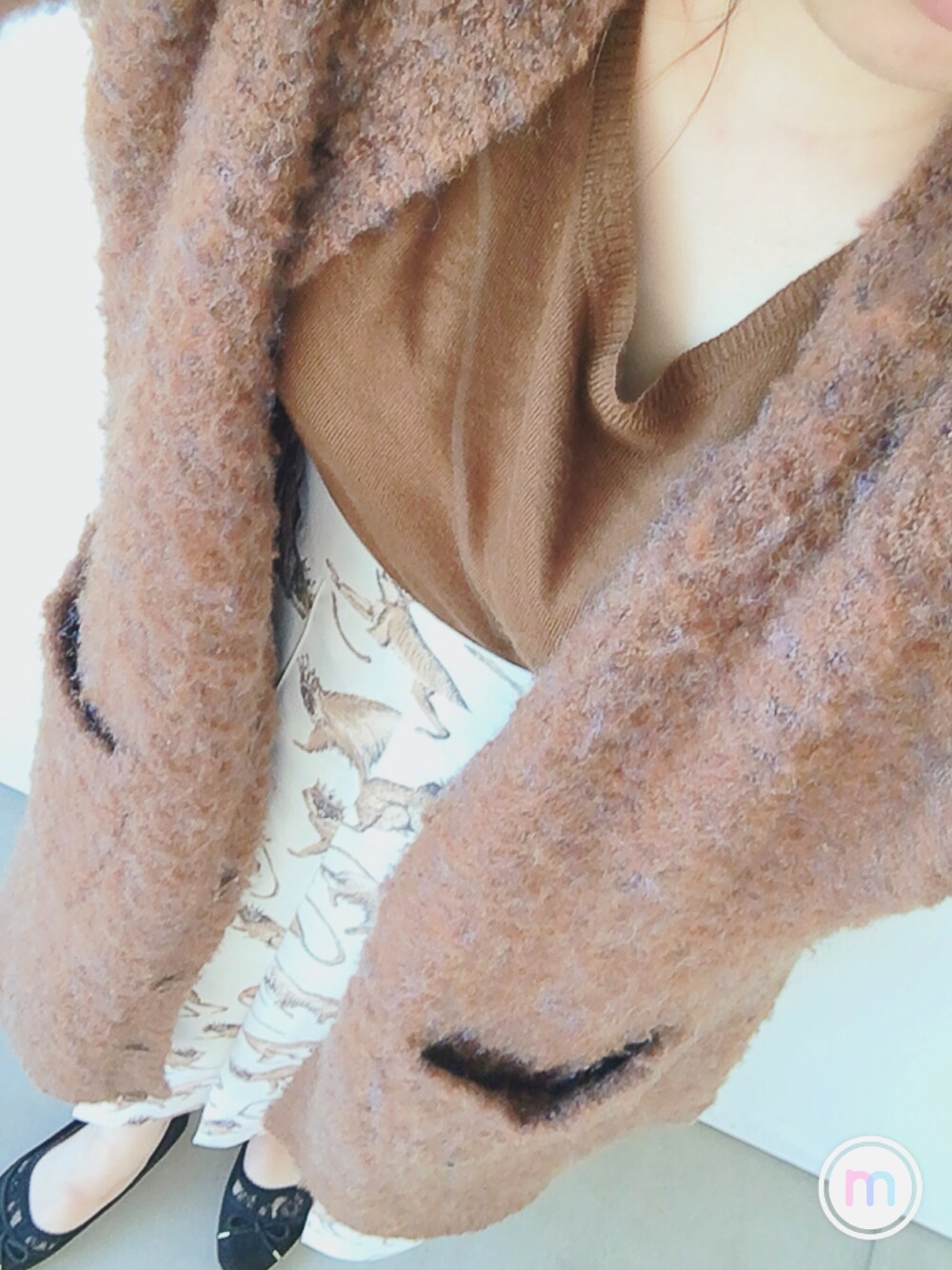 プチプラコーデ H&Mの猿?柄のプリーツスカートはお気に入りでよくきてお出かけします! 寒くなってきたので頭にはヒョウ柄のベレー帽着用しています