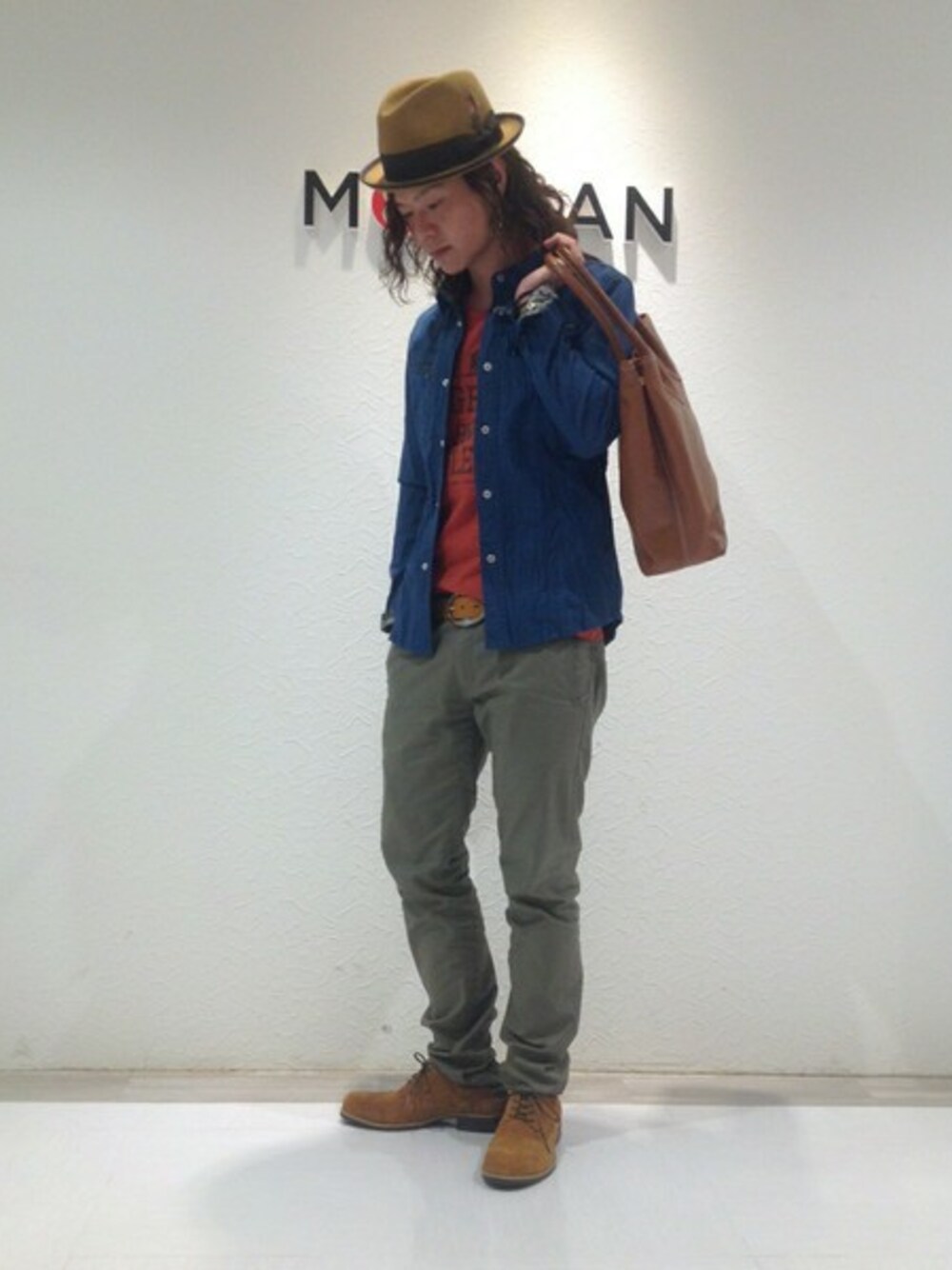 "秋"を意識したコーディネート。 あまり暗くならない様カラーバランスを考えて。 ポイントは、ハット、ベルトに"秋カラー"である"キャメル"を取り入れたところです。