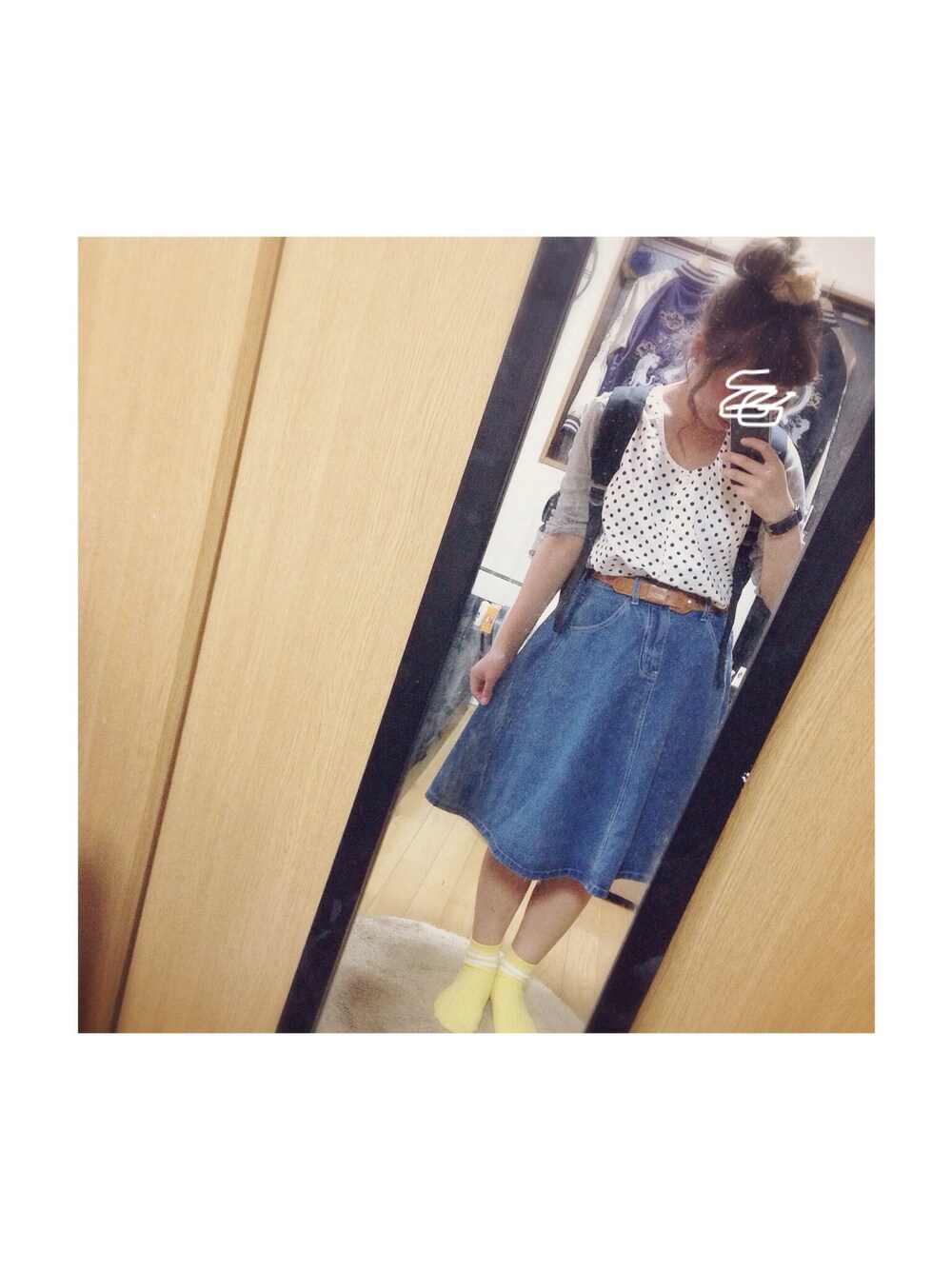 c h i h i r oのデニムスカート「デニムフレアスカート」を使ったコーディネート