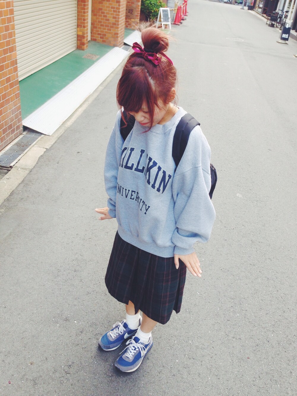 1014 全身古着ちゃんです。自分らしい服装〜❤︎最近わ大人っぽいのも好きで黒とかも買うようになったけど、やっぱりこゆのも好き。お洒落たのし〜。短い髪の毛で、お団子🍡もできるようになりました乁( ˙ω˙ 乁)