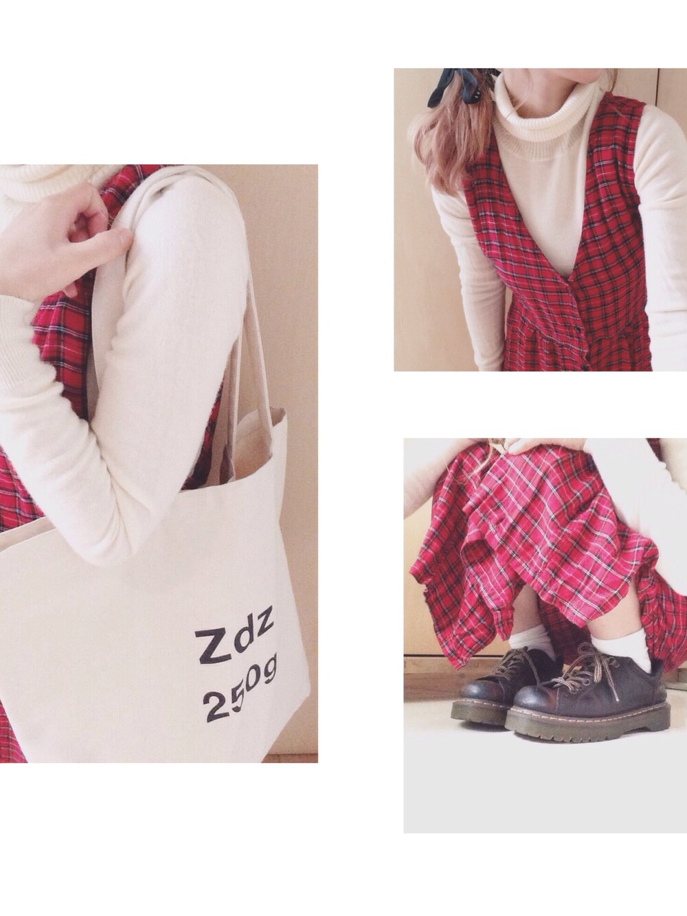 赤チェックのわんぴーす これ、めっちゃお気に入りです(^ω^)🌷 タートルとマーチンで合わせました 。