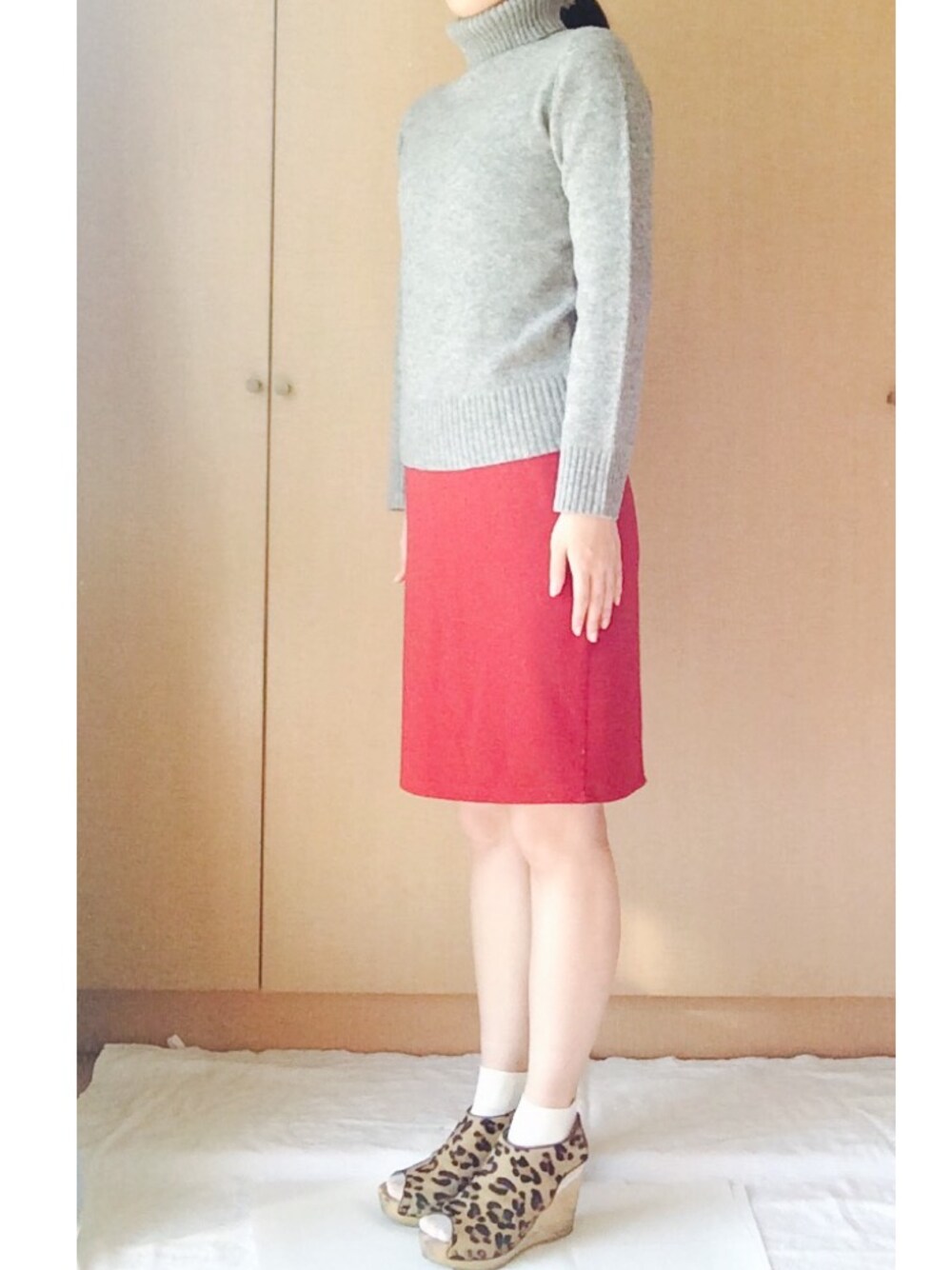 赤×レオパード🐆💓 コーディネートの写真って、自撮りも、他の人に撮ってもらうのも、どっちも難しい😓 ポーズどうしたらいいか分からなくて直立不動😭