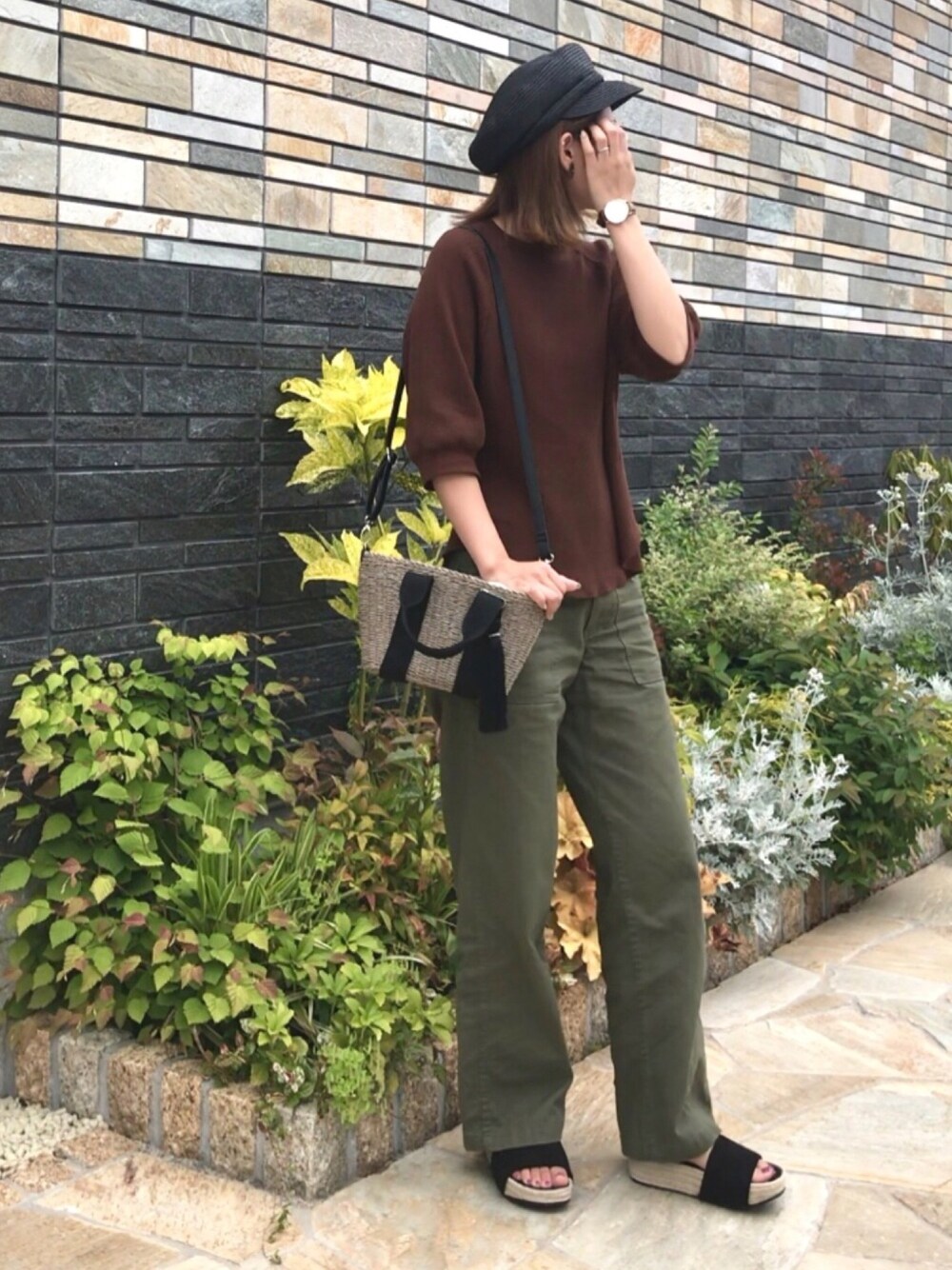 着まわしコーデ♡ 前にも似たような コーデしてるけど GUのワッフルは五分丈やし 今くらいが丁度いい感じ😊 インせずに出してもいいかな Lサイズ着用です。