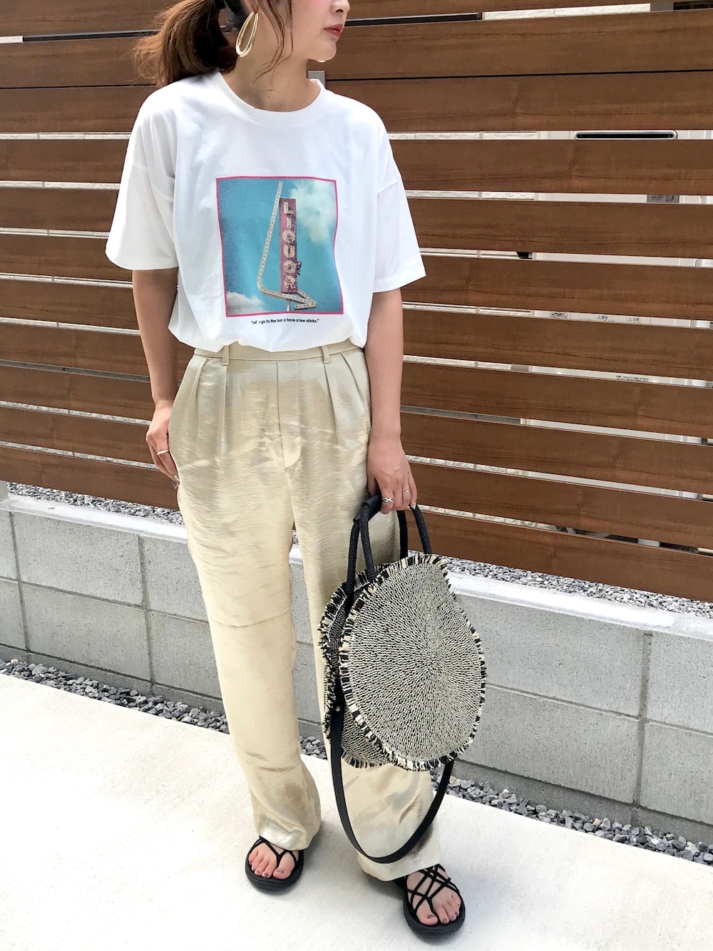 フォトプリントtとサテンパンツ💫💫 インスタ☞@c__tm