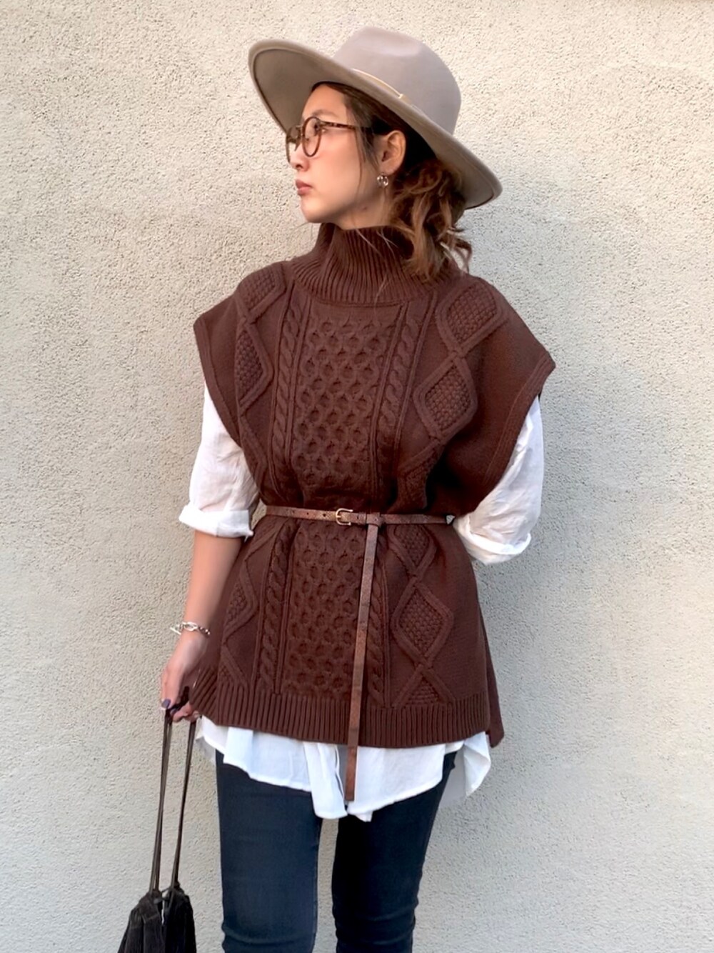 ケーブルニットベスト❤︎ シャツ合わせ インスタ☞@c__tm