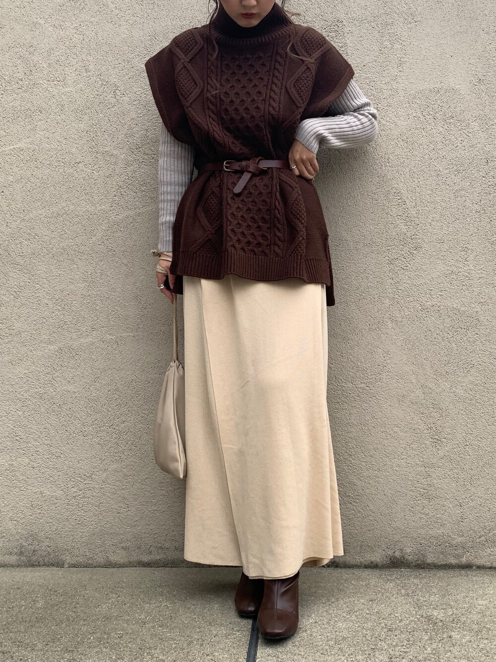 ちぴょんのニット/セーター「ボトルネックノースリケーブルニット」を使ったコーディネート