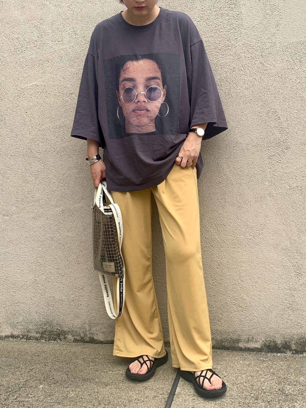 ちぴょんのTシャツ/カットソー「via j(ヴィアジェイ) サングラス転写プリント半袖Tシャツ」を使ったコーディネート