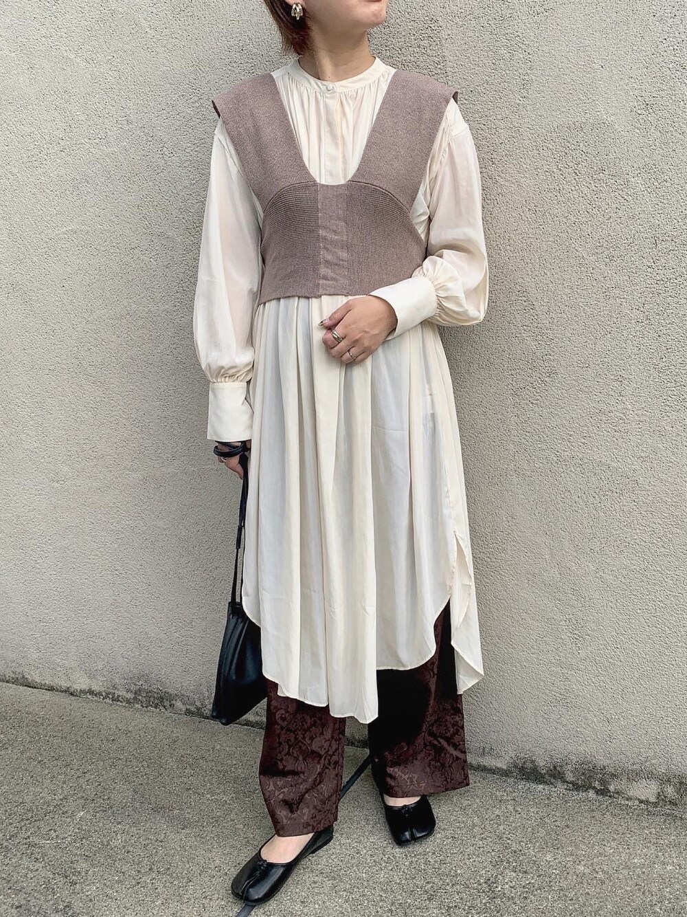 シャツワンピxビスチェ ジャガードパンツ🤎 インスタ☞@c__tm