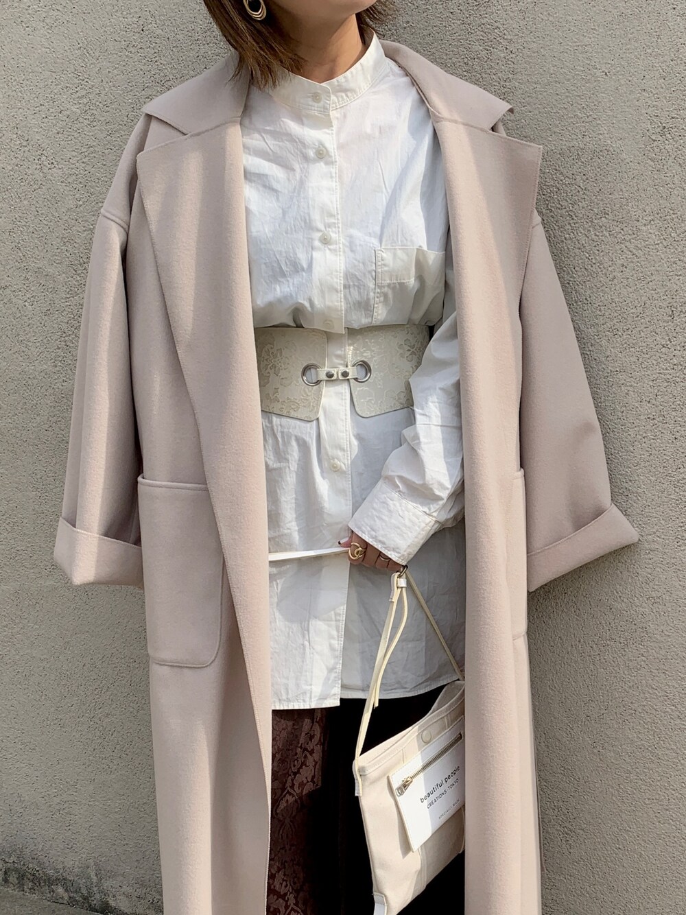 ちぴょんのチェスターコート「[金子麻貴さん着用][低身長サイズ有]ダブルフェイス軽量ガウンコート」を使ったコーディネート