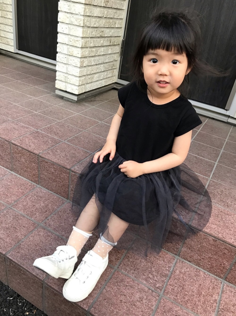 . 入園式用に購入したチュールスカートワンピ♡ とにかくフリフリが好きな娘がお気に入りの服の中の1つ🥰 . スニーカーと合わせてカジュアルに✨