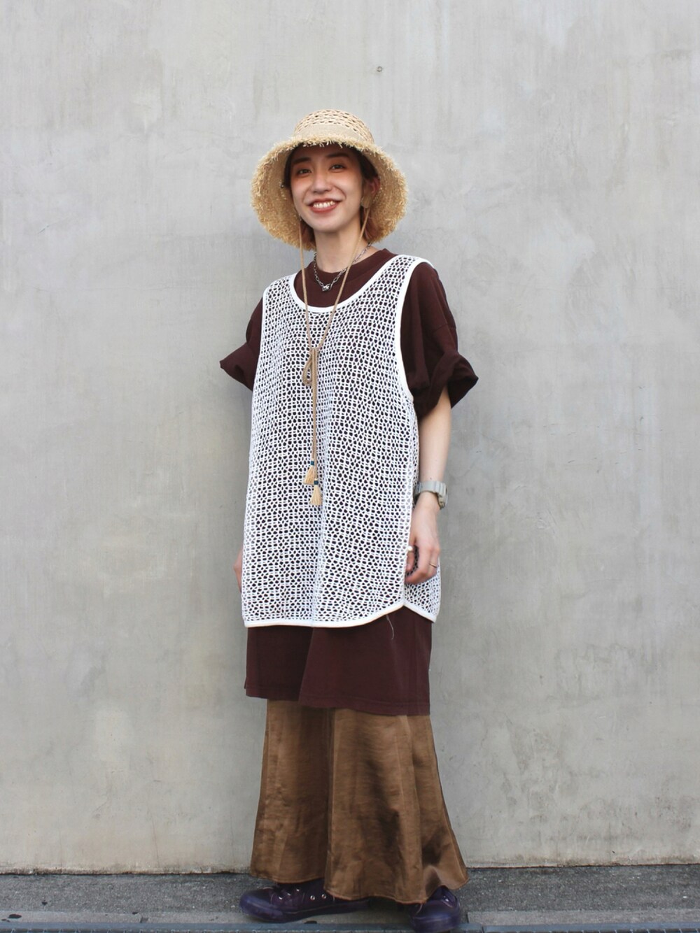 chruu(OVERRIDE 本部)のハット「【OVERRIDE】RAFFIA FRINGE HAT / 【オーバーライド】ラフィア フリンジ ハット」を使ったコーディネート