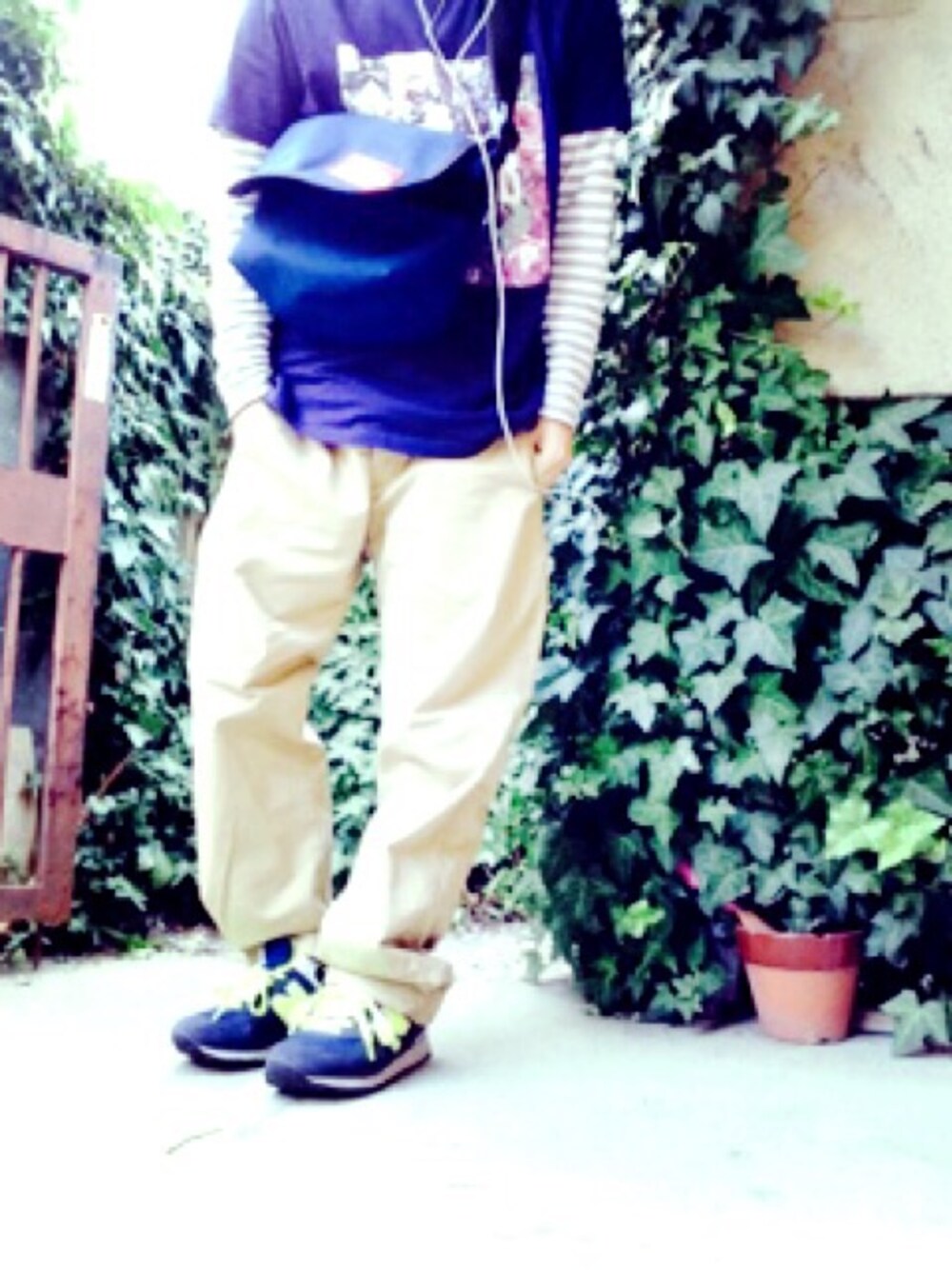 iPhoneのカメラ、 セルフタイマー出来るようになったけど 画質悪すぎる。笑 パンツ:GAP スニーカー:New balance
