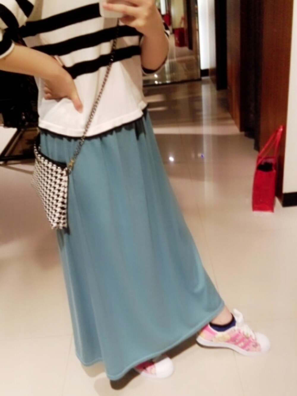 利用五分袖和短版的上衣把肉肉的手臂&肚肚藏起來,長裙遮胖胖的下半身😁😁