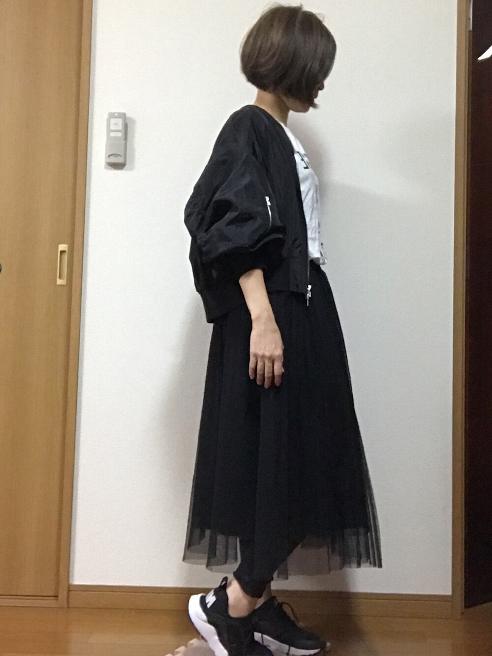 抜襟なma-1は一目惚れ‼️ 羽織った瞬間買うしかないと即買い😍 スカートはチュールが二重になってて、外側はプリーツ💃🏻 レギンスと合わせてアスレジャー🏃まではいかないかな⁉️ でも、お気に入りのNIKEと💋