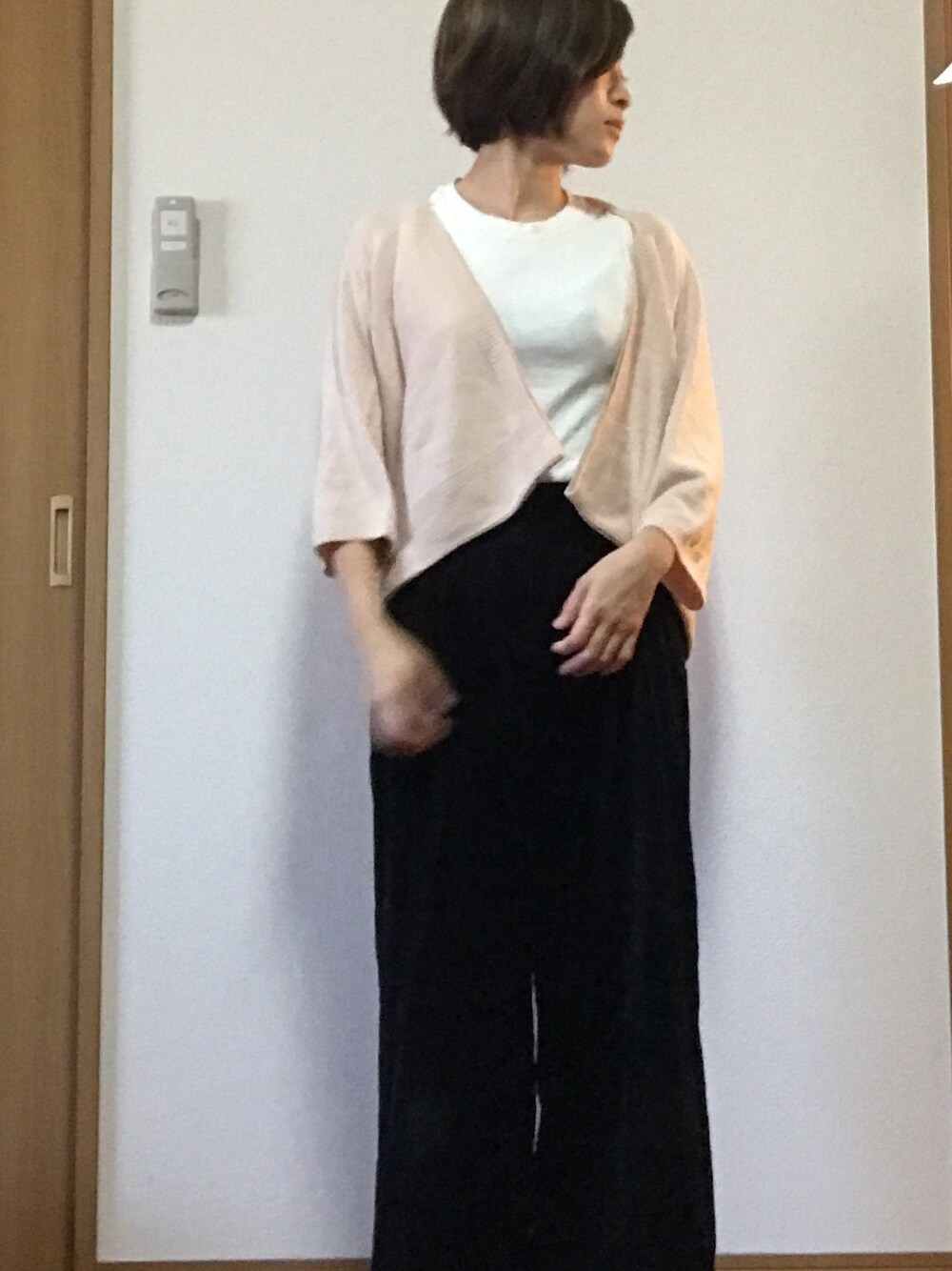 高校時代に着ていたKBFのカーディガン発見‼️ 羽織ってみましたが、どうかな⁉️ インナーは真っ白よりボーダーとかのほうがよかったかな😵 なんだか慌ててイベントに参加😁 受かるも受からないも参加することに意味があるかなっと🤗