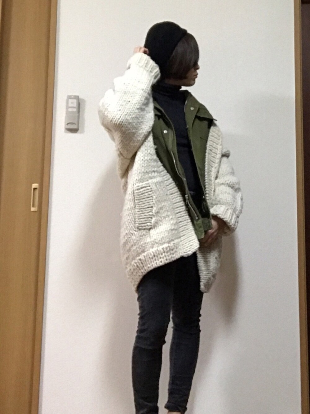 ハンドニットとの重ね着で少しでも暖かく🔥 ゆるい感じがやっぱり可愛いな💕 寒くてもなんとか着たいハンドニット‼️ 新しい着方勉強せな😤