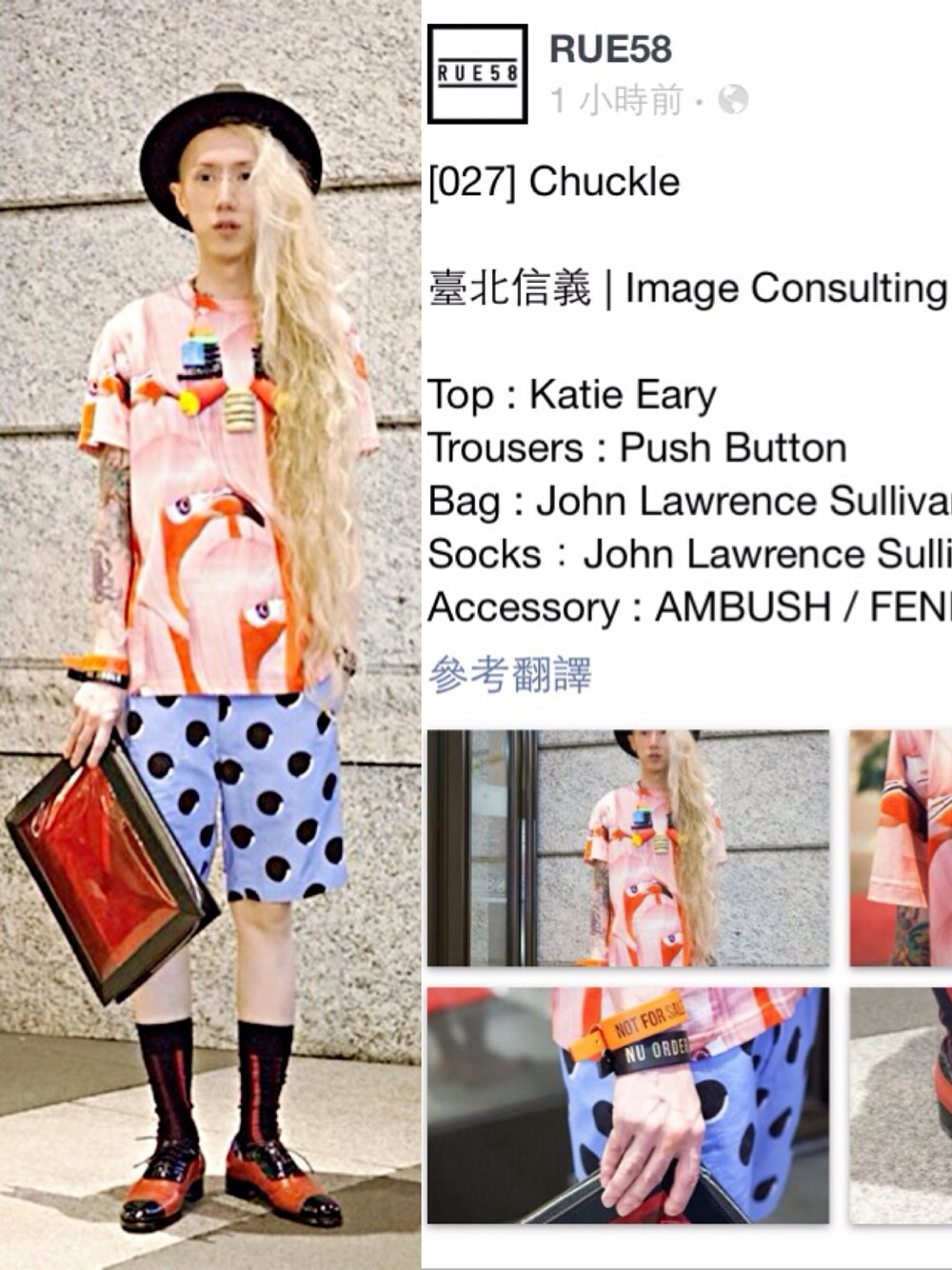 <Street shooting> 臺北信義 | Image Consulting(merci) Top : Katie Eary Trousers : Push Button Bag : John Lawrence Sullivan Socks:John Lawrence Sullivan Accessory : AMBUSH / FENDI / FACETASM