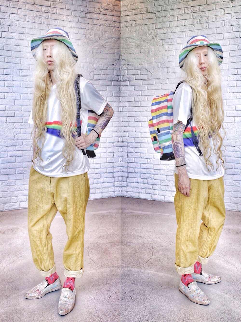 Are you 🌈rainbow today🍭 AS SEEN ON Chuckle Hat:White Mountaineering T-shirt:PHENOMENON Bag: White Mountaineering Pants:White Mountaineering Shoes: SWEAR