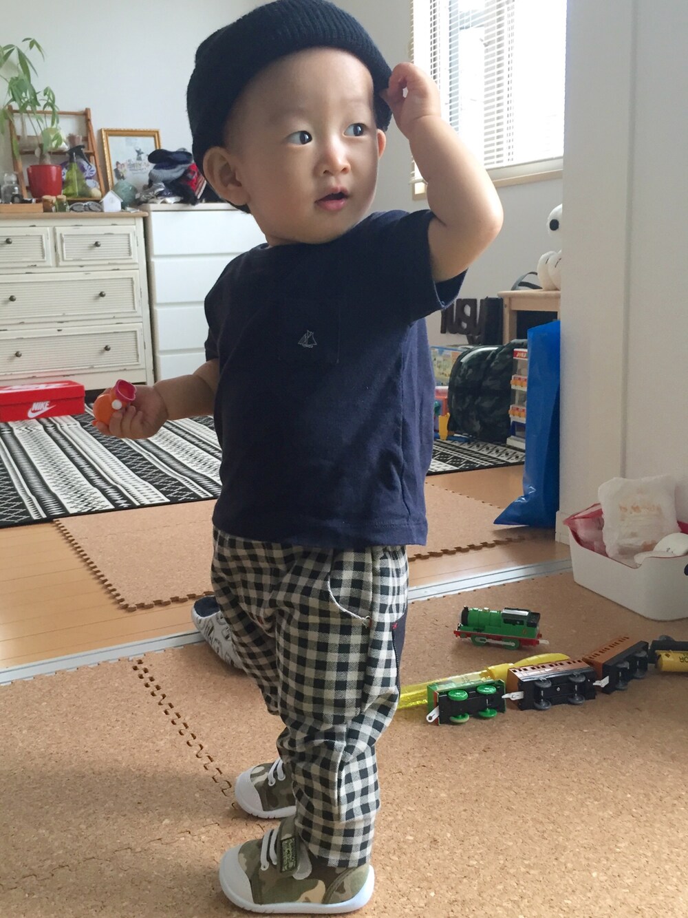 母の帽子♪ 少し大きいね。。