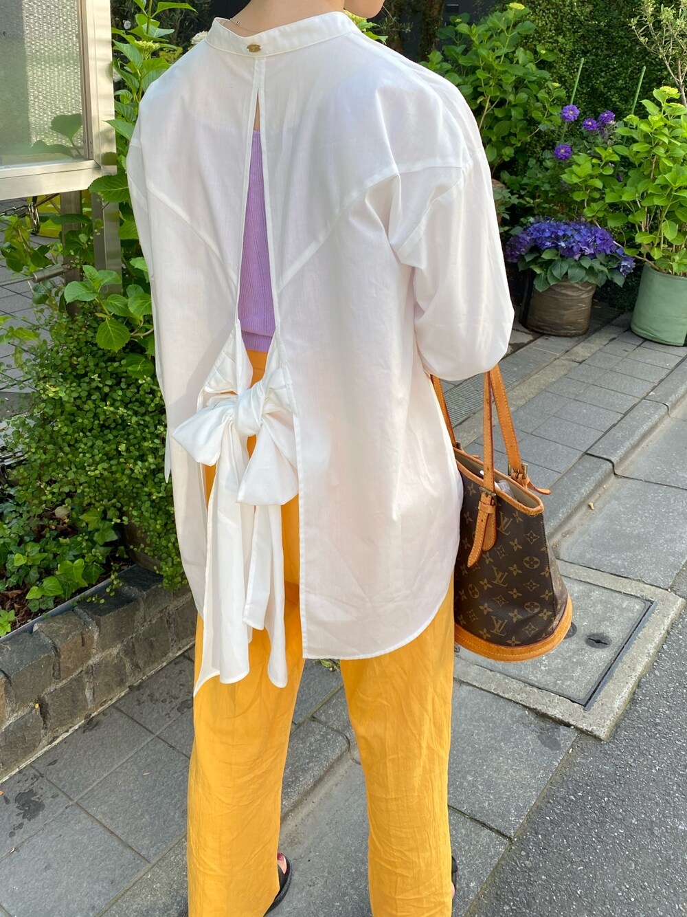 tsuzumiのシャツ/ブラウス「バンドカラーバックリボンブラウス」を使ったコーディネート