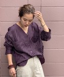 tsuzumiのシャツ/ブラウス「カラーレスストライプシャツ」を使ったコーディネート