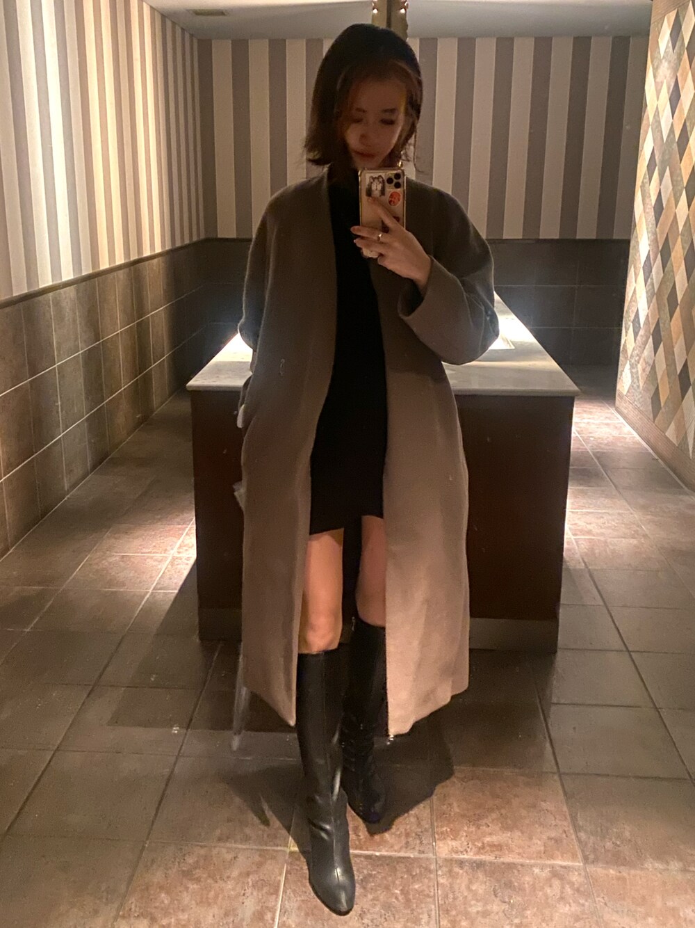 クリスマスディナー🎄 去年から姉から借りたままのミニワンピをはじめて着用👗🖤(返しなさい) アウターはVISの🤎
