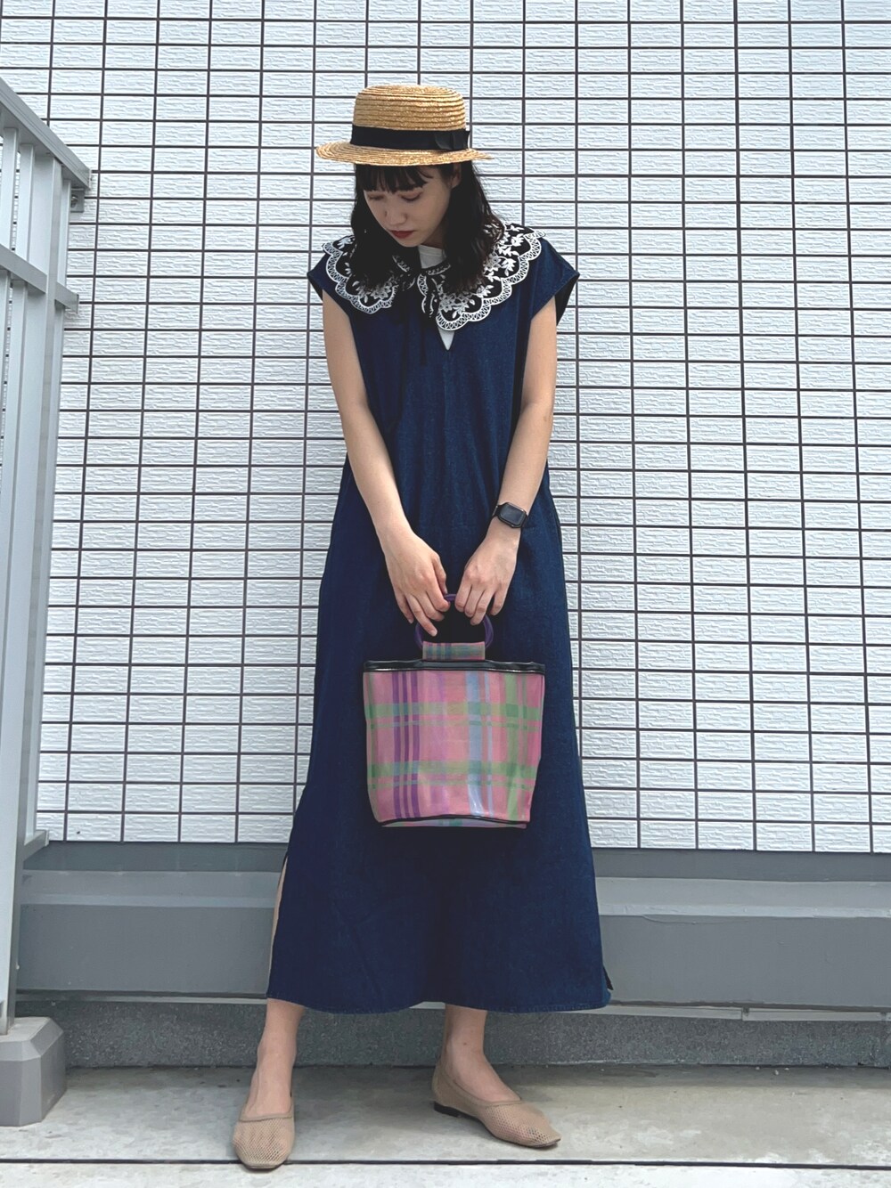 なつのワンピース「キーネックロングベストワンピース」を使ったコーディネート