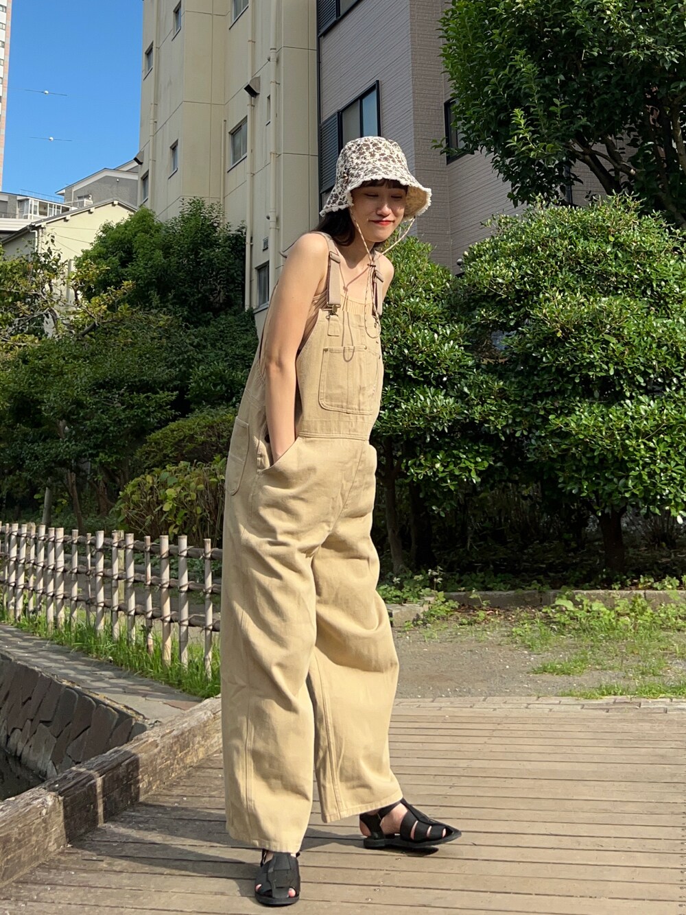 バケハもサロペもキャミもグルカサンダルも全部アウトドアっぽくて好き〜〜! instagram: 【chunatsukii】 フォローお願いします🌱