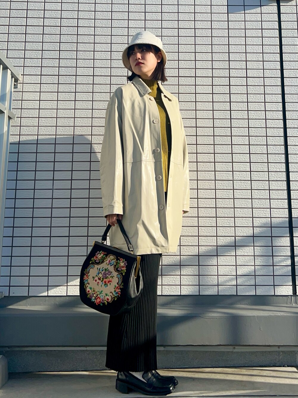 大人っぽい春アウターコーデ☁️ 閉めたらモノトーンコーデ。 開ければニットが主役の綺麗目コーデ。 場所の雰囲気に合わせられるコーデがいい◎