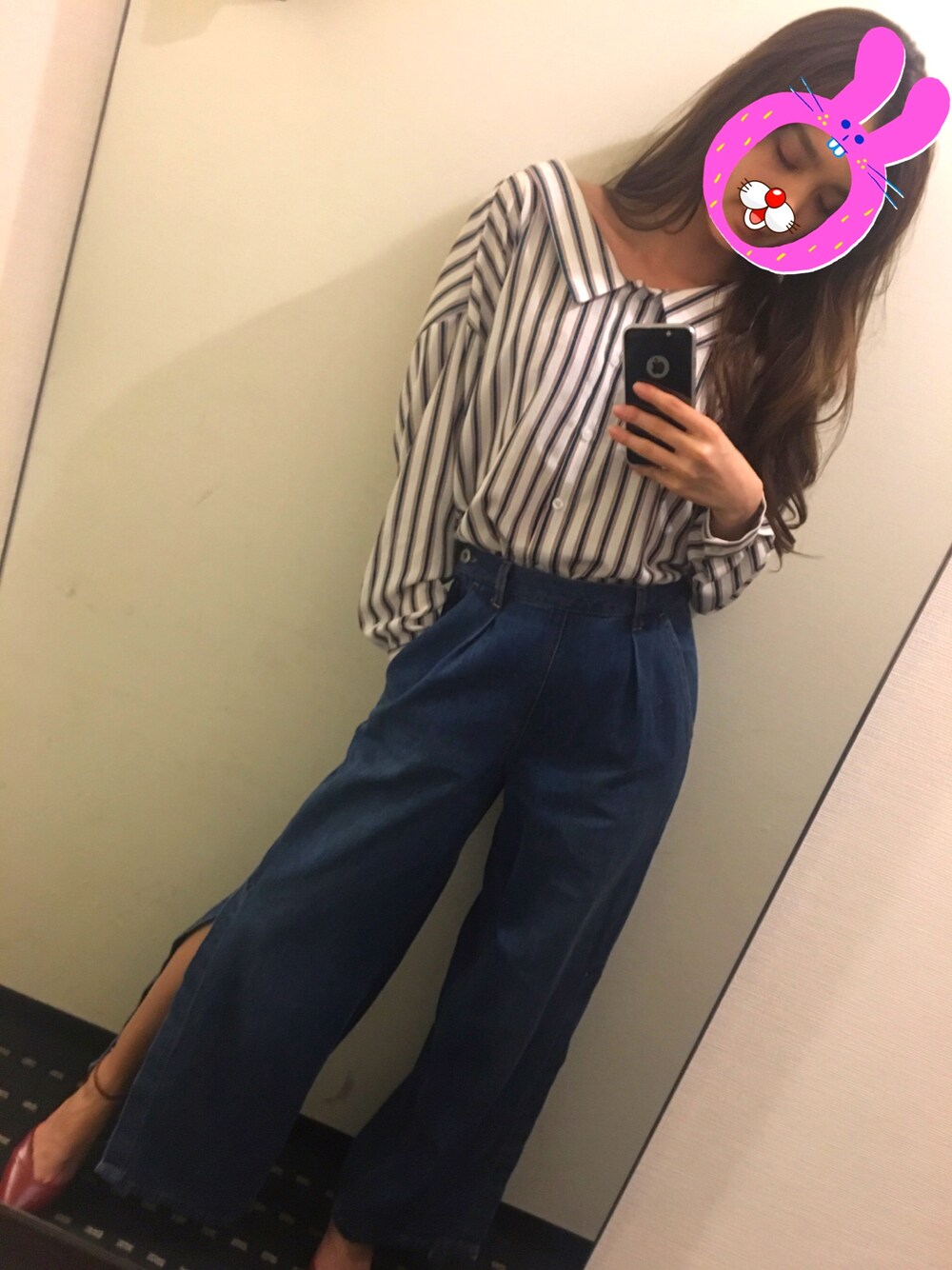 初音のデニムパンツ「デニムワイドスリットパンツ」を使ったコーディネート