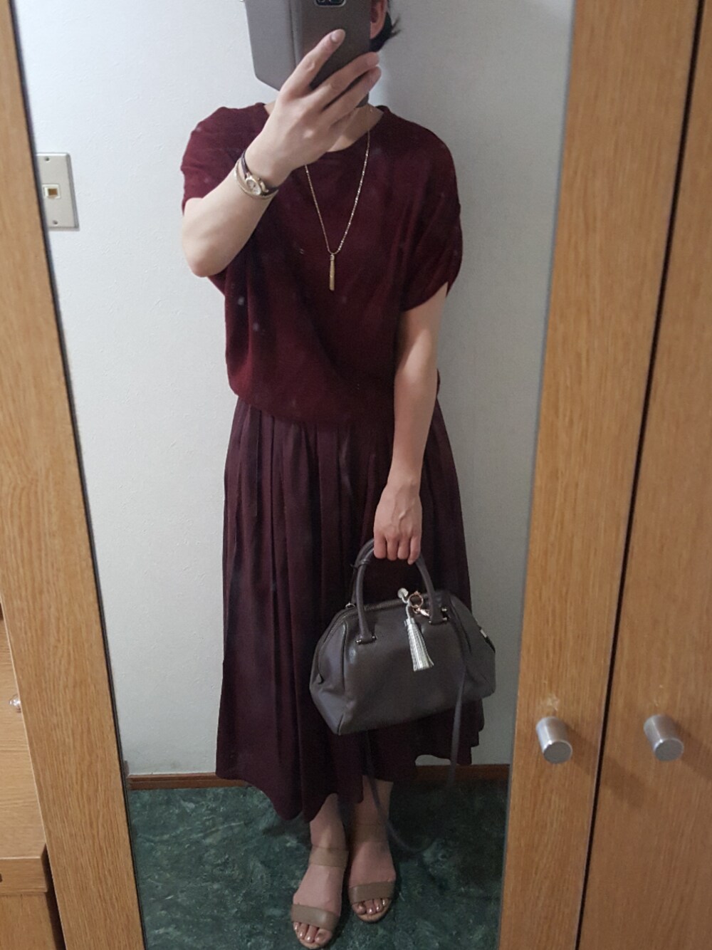 夏服に飽きてきた頃に着たくなるボルドー セールでロングスカートをプリプラで買えて嬉しい😃✨