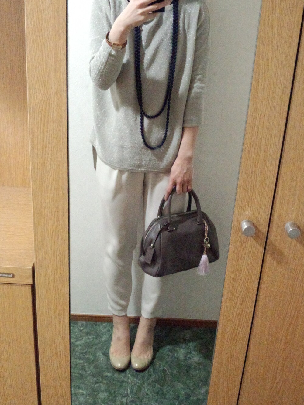 はなのハンドバッグ「グレージュバッグ」を使ったコーディネート
