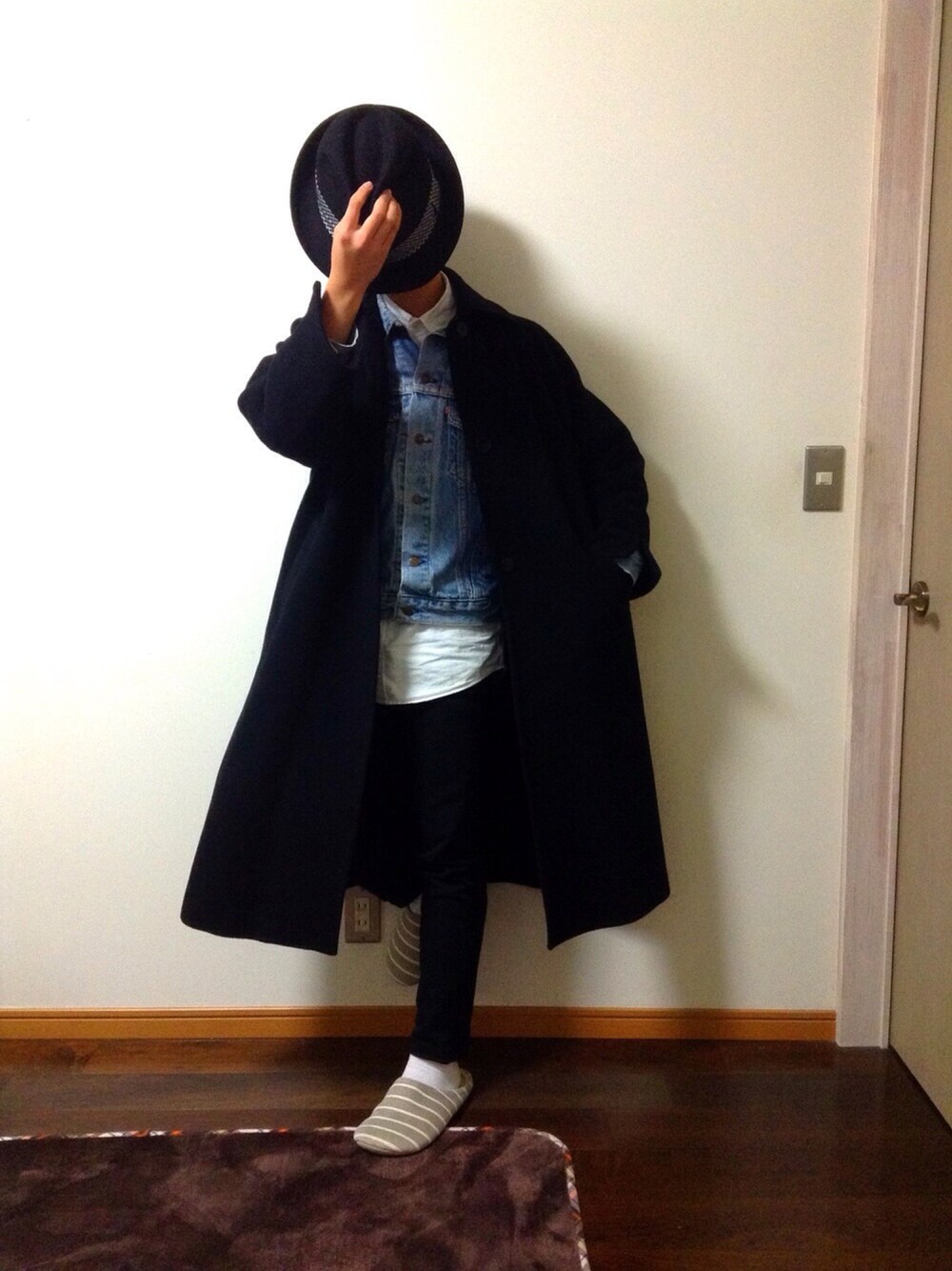 デニムジャケットとオーバーコートでアウターonアウター❗️✨ ちょっと形になってるかな❗️❓ このオーバーコートとデニムジャケットが今年1番のお気に入りアウターです❗️💖