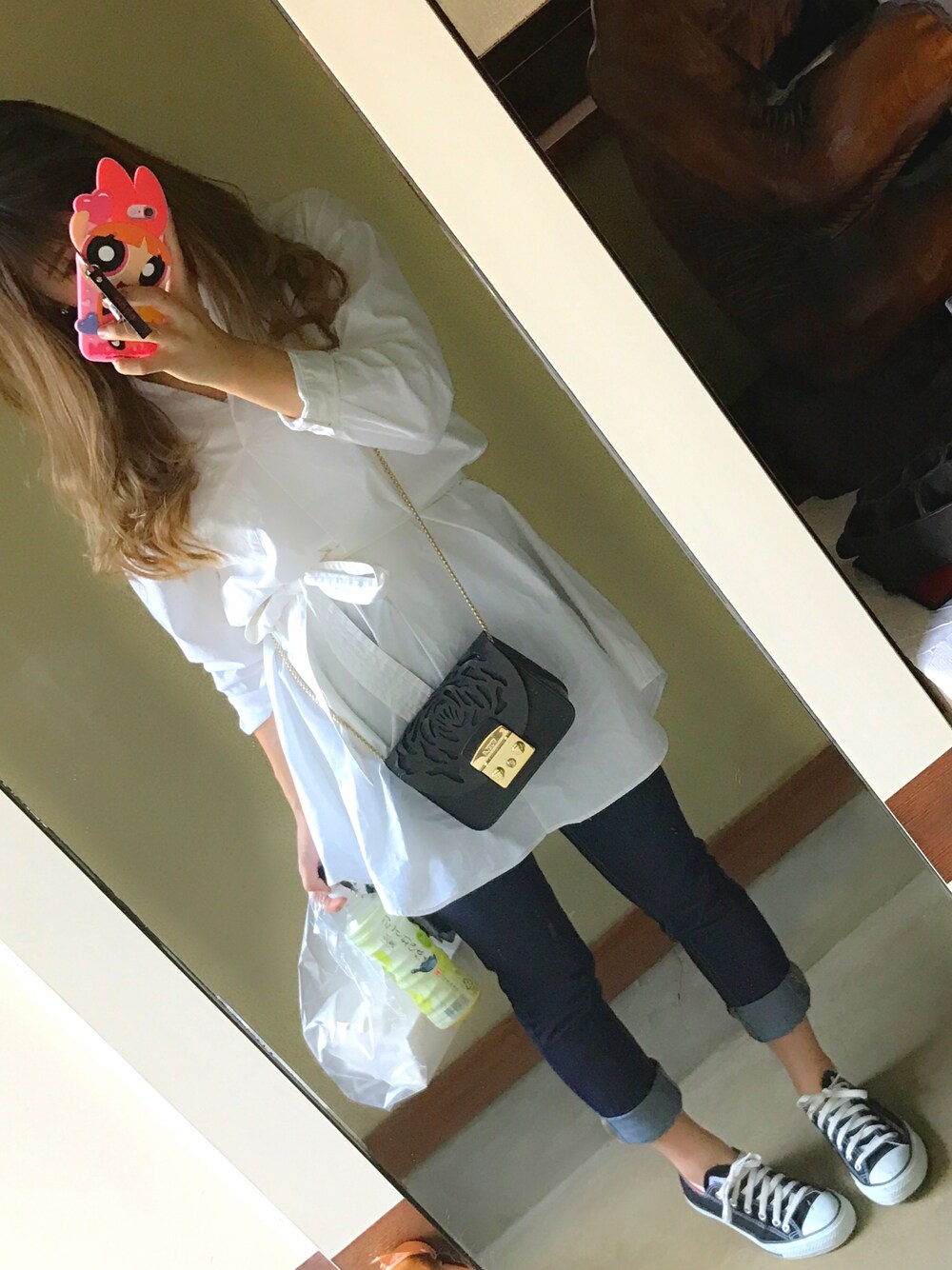 朝夜寒くてお昼暑い位(´・ω・`) 楽チンコーデ ワンピースは2年くらい前のもの(´-`).。oO chicoのスキニー履きやすくっていいかんじ💖