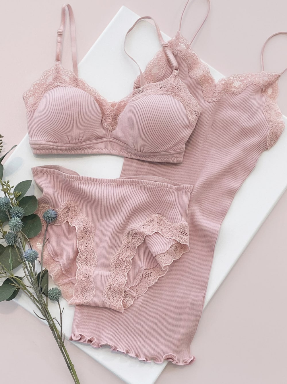 chutintimatesのブラ&ショーツ「★特別限定セット★【コットンシルク C165】ノンワイヤーブラ+ショーツ+キャミソール 3点セット (X714) 綿100%」を使ったコーディネート