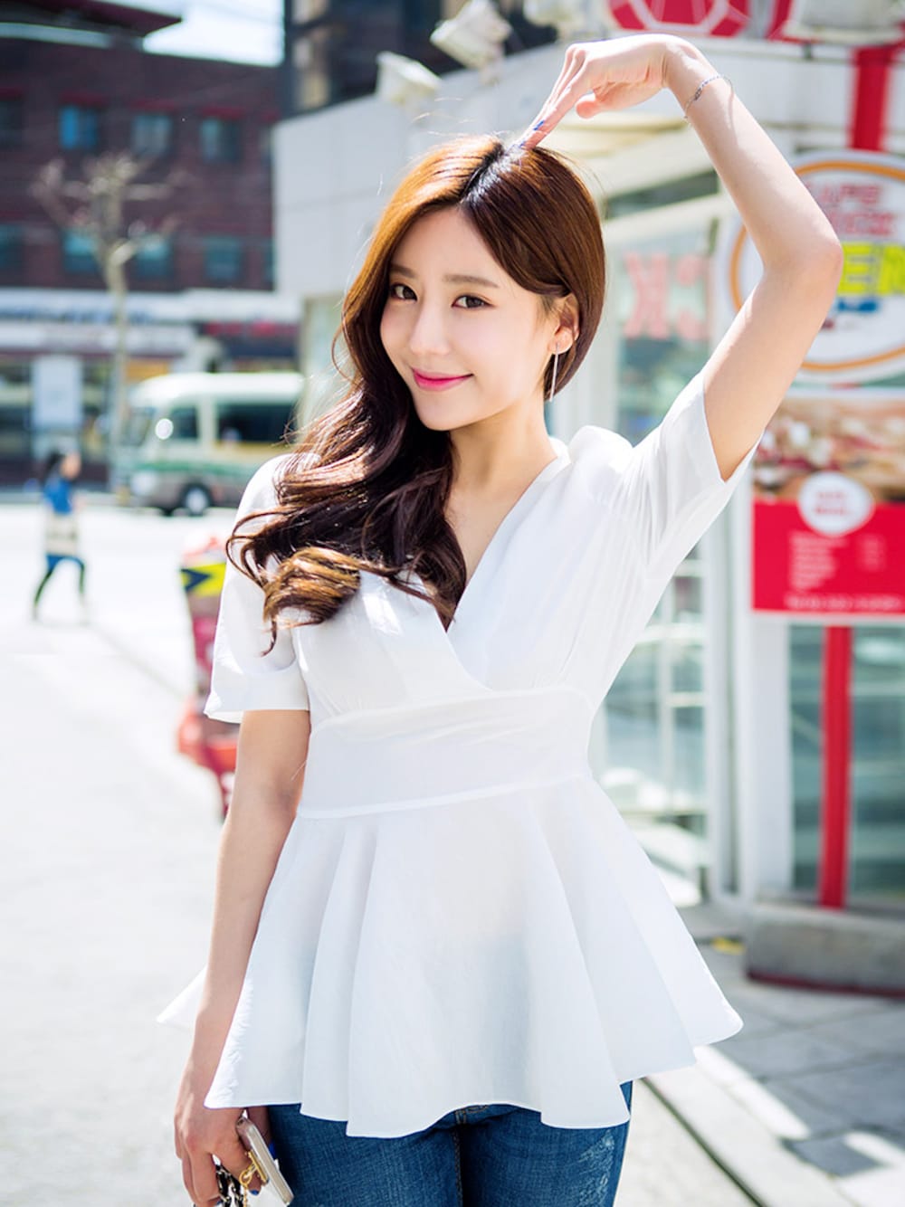 chuuのシャツ/ブラウス「バックりぼんVネックペプラムブラウス」を使ったコーディネート