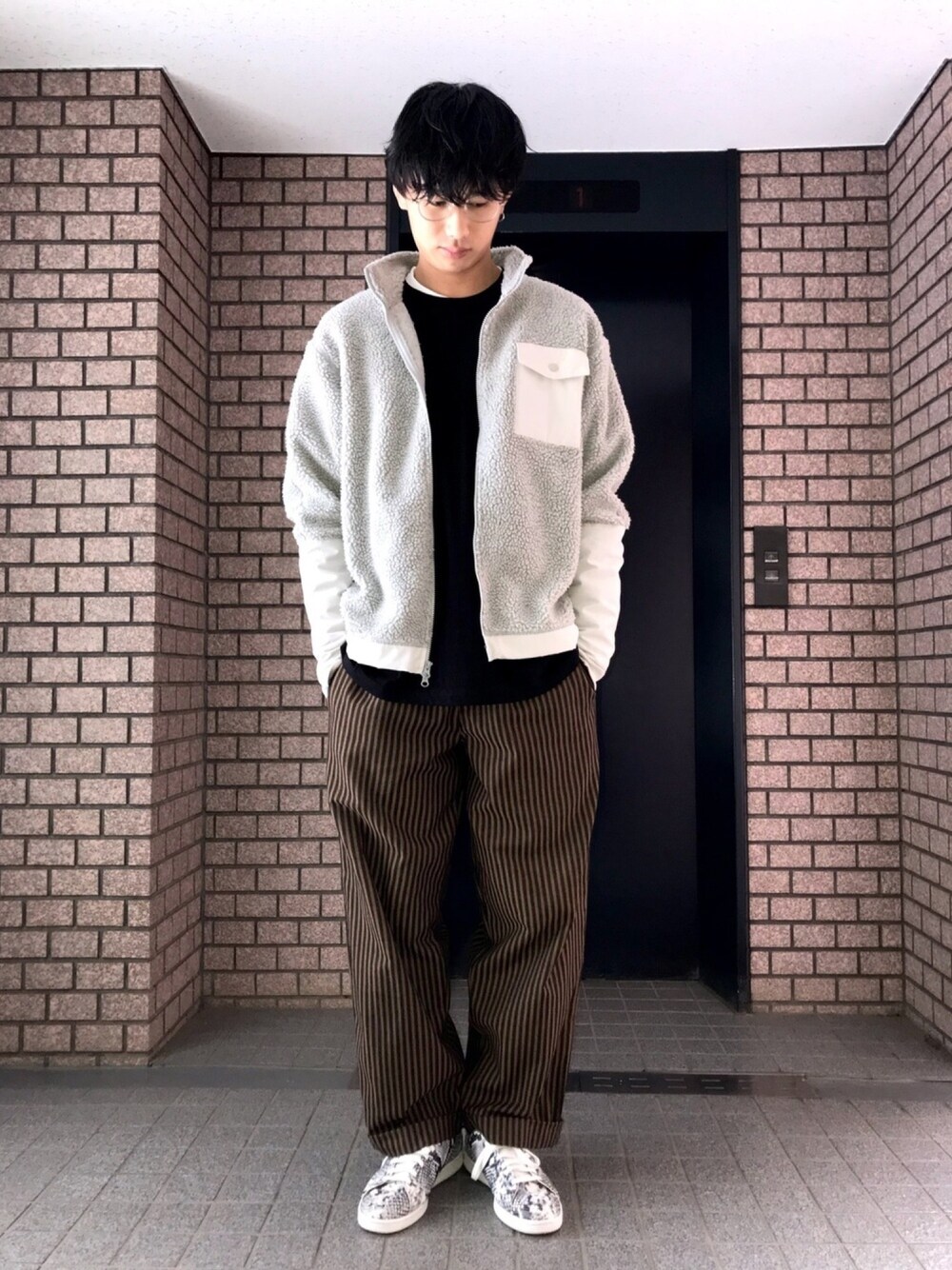 Hiromiのブルゾン「【BLUE GEAR DESIGN 】ボアフリース ジップアップ ジャケット#」を使ったコーディネート
