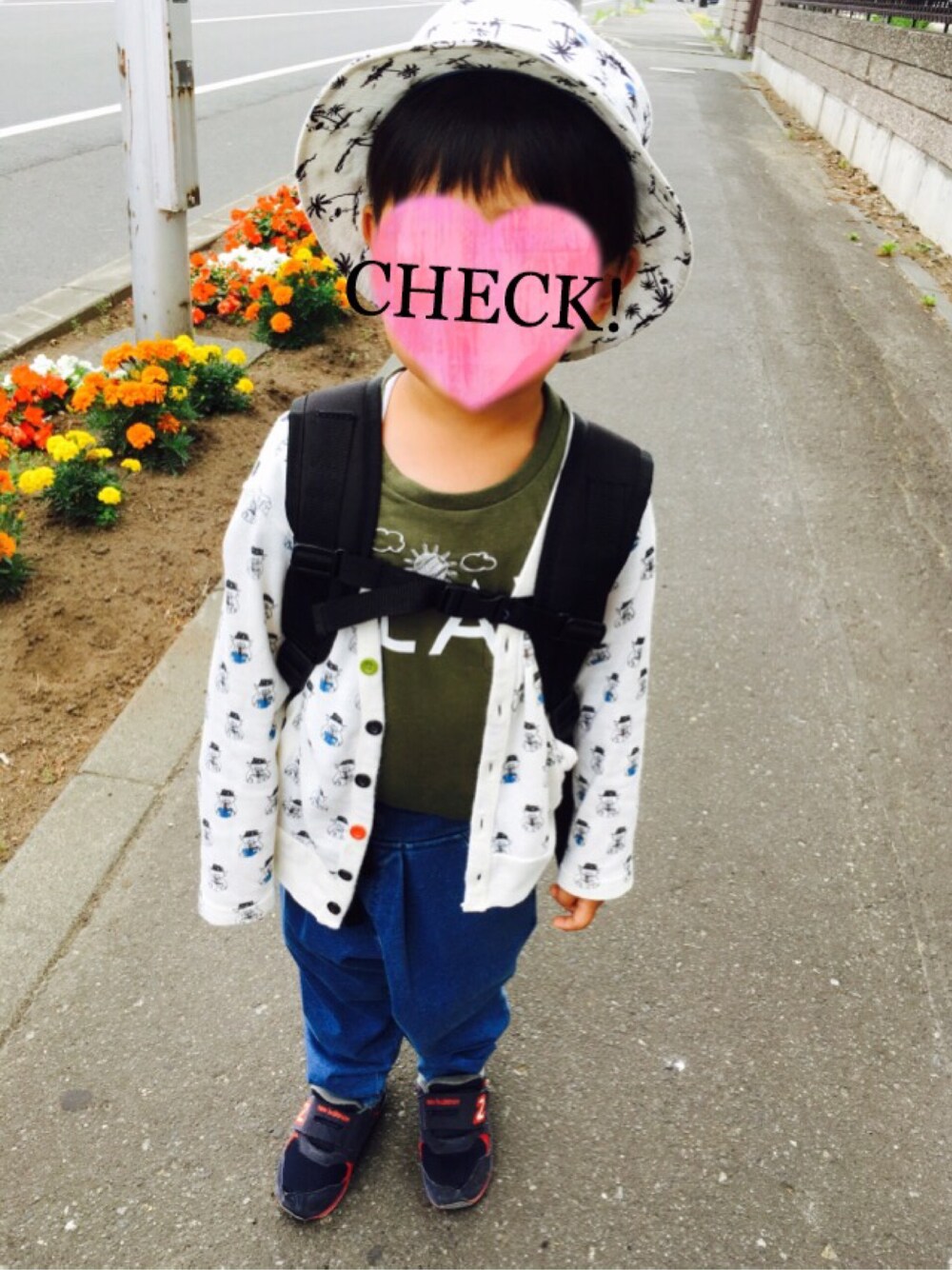 今からお出かけ* 柄カーディガンに柄のハット笑 子どもだから許される笑