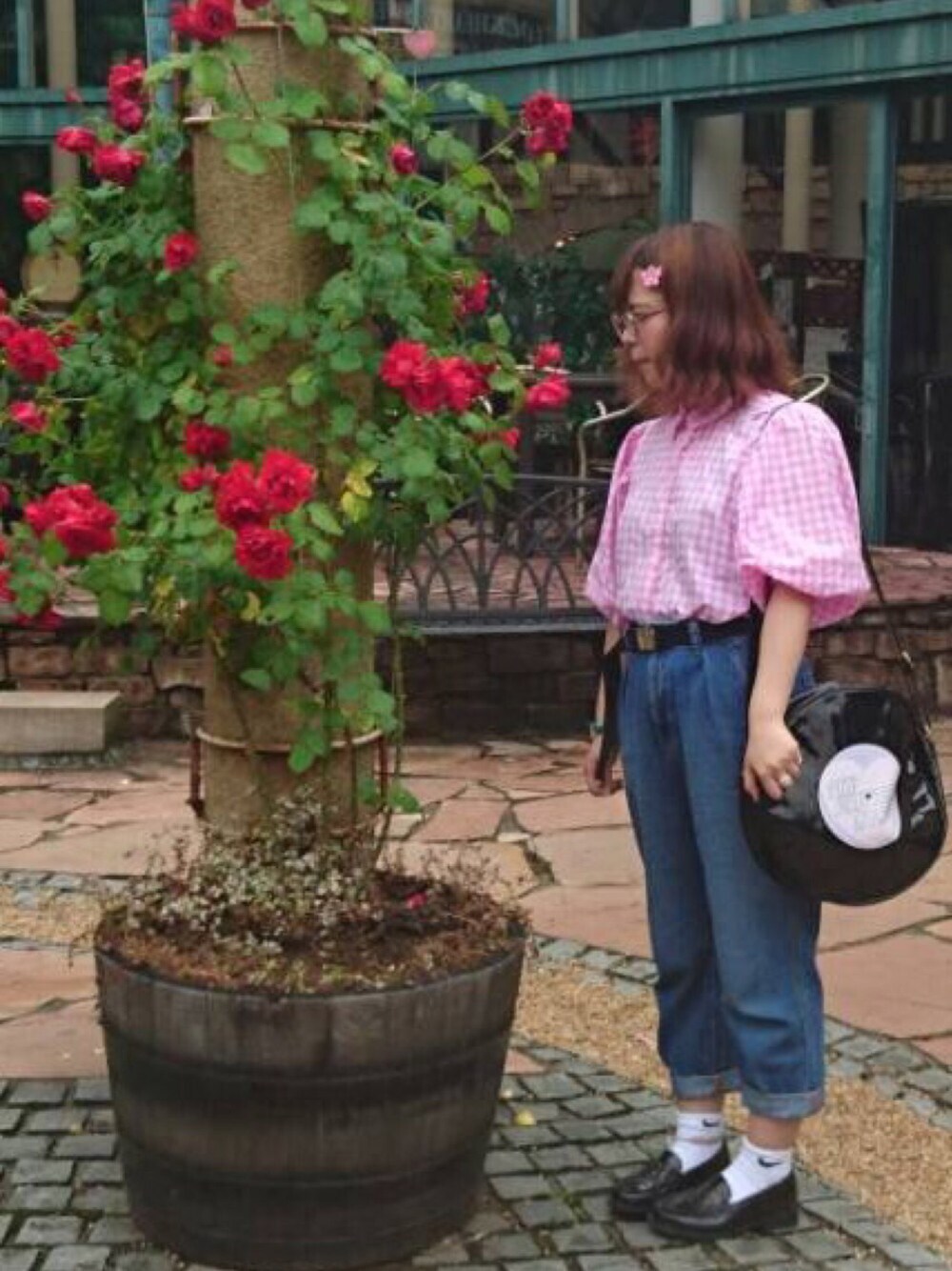 ちゅんのシャツ/ブラウス「ギンガムバルーン袖ブラウス」を使ったコーディネート