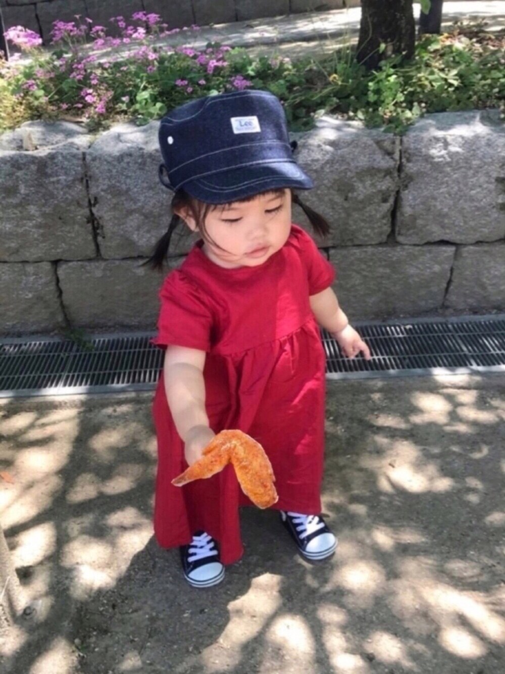 そうだ!お肉を食おう! 手羽先フェス 手羽先を直で持たせる勇気はなく… 合成pic🍖笑 こんなのでもありですか?? になこさん なた。さん ジャッジよろしくお願いします😊 Birthdayで一目惚れした赤リネンワンピ❤️ 身長74cmのすーさん、95を着てます。 編み込みヘア、練習中です🙈