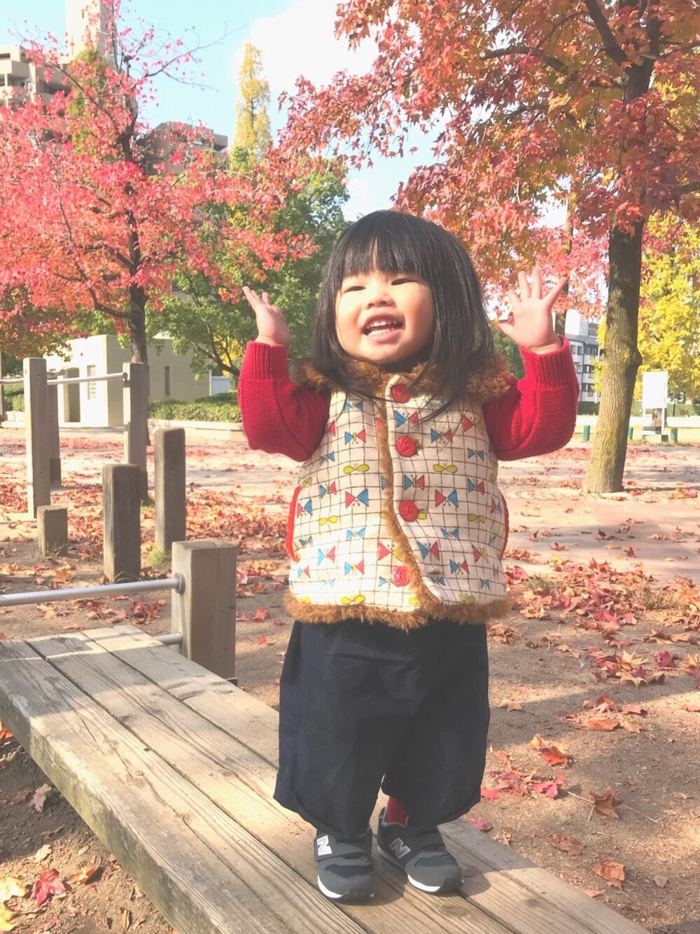 紅葉の公園コーデ🍁 真っ赤なニットとリバーシブルベストで たくさんあそびました♡