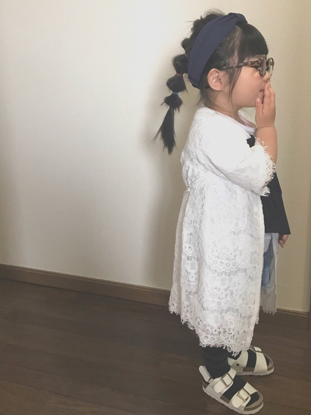 着まわしコーデ。 去年・一昨年に着ていたお洋服… ぽっちゃりはんにはパツパツです。 プティマインのサンダルだけは新調しました。 3歳児検診で発覚した遠視のおかげで、 リアルめがねさんになりました。