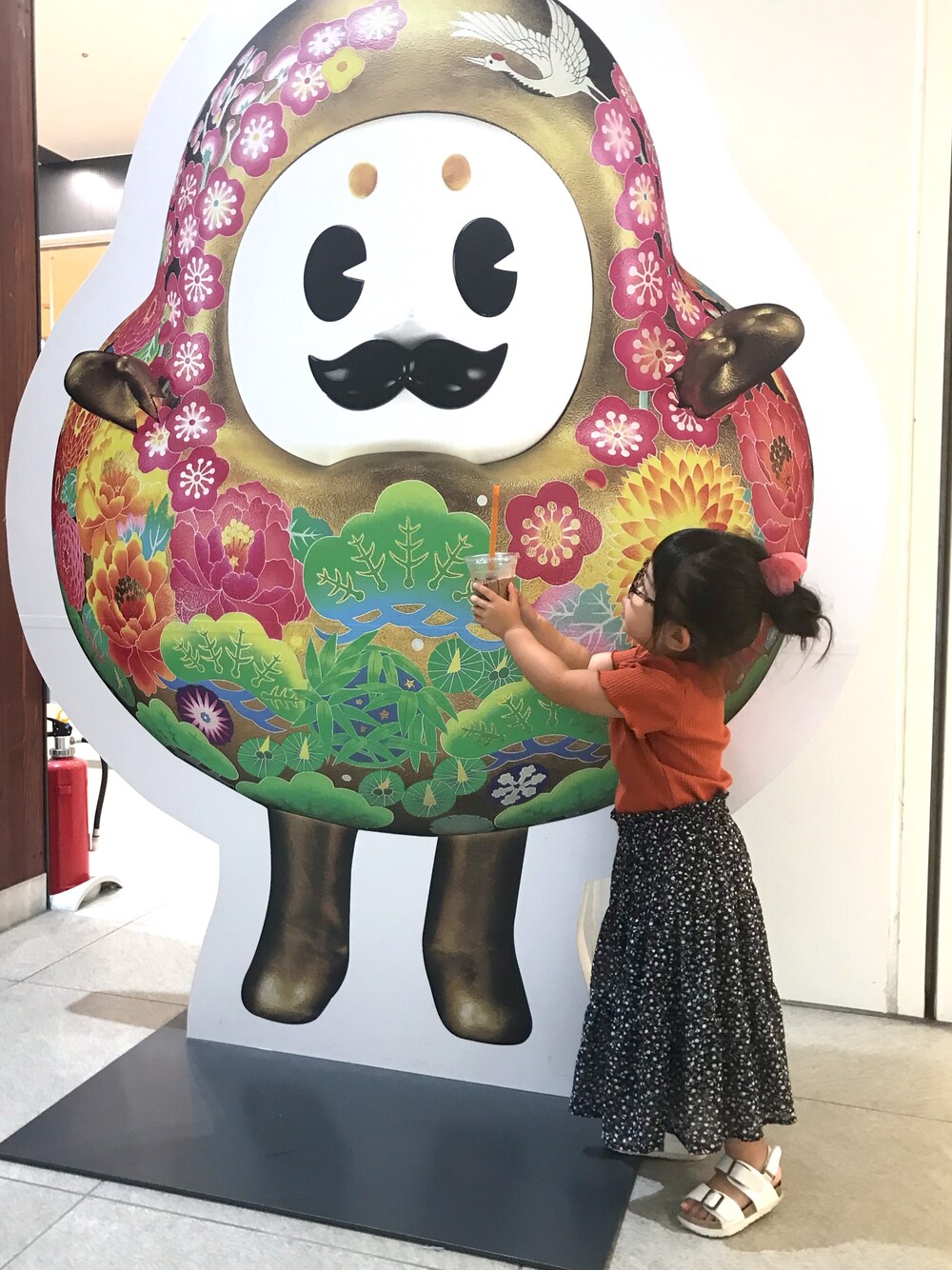 バースデイのティアードスカート. 久々に履くと丈感が良い感じに!! 数センチ身長が伸びた様子. 金沢駅にある「ひゃくまんさん」にスワークル飲ませてあげているすーさん.